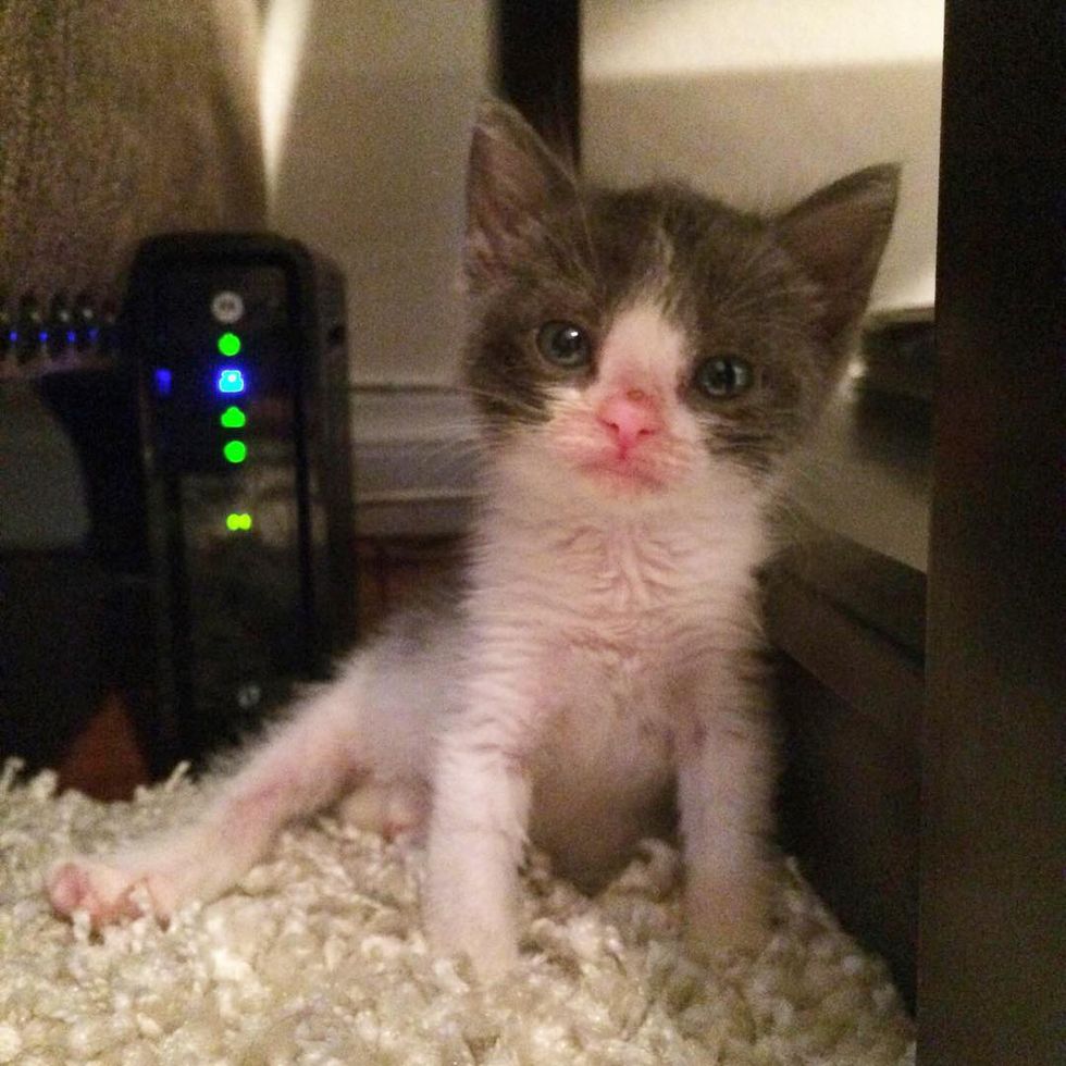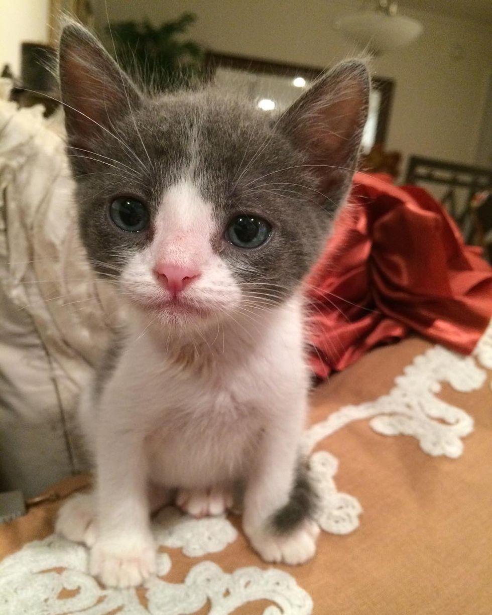 Casey Christopher, a photographer, visited the shelter, looking to adopt a cat. A volunteer, Kelly, showed her two little foster kittens, and one of them was Imogen (then named Penny). The shy kitty, who would normally hide away from strangers, somehow took a liking to Casey, and at that moment she just knew.