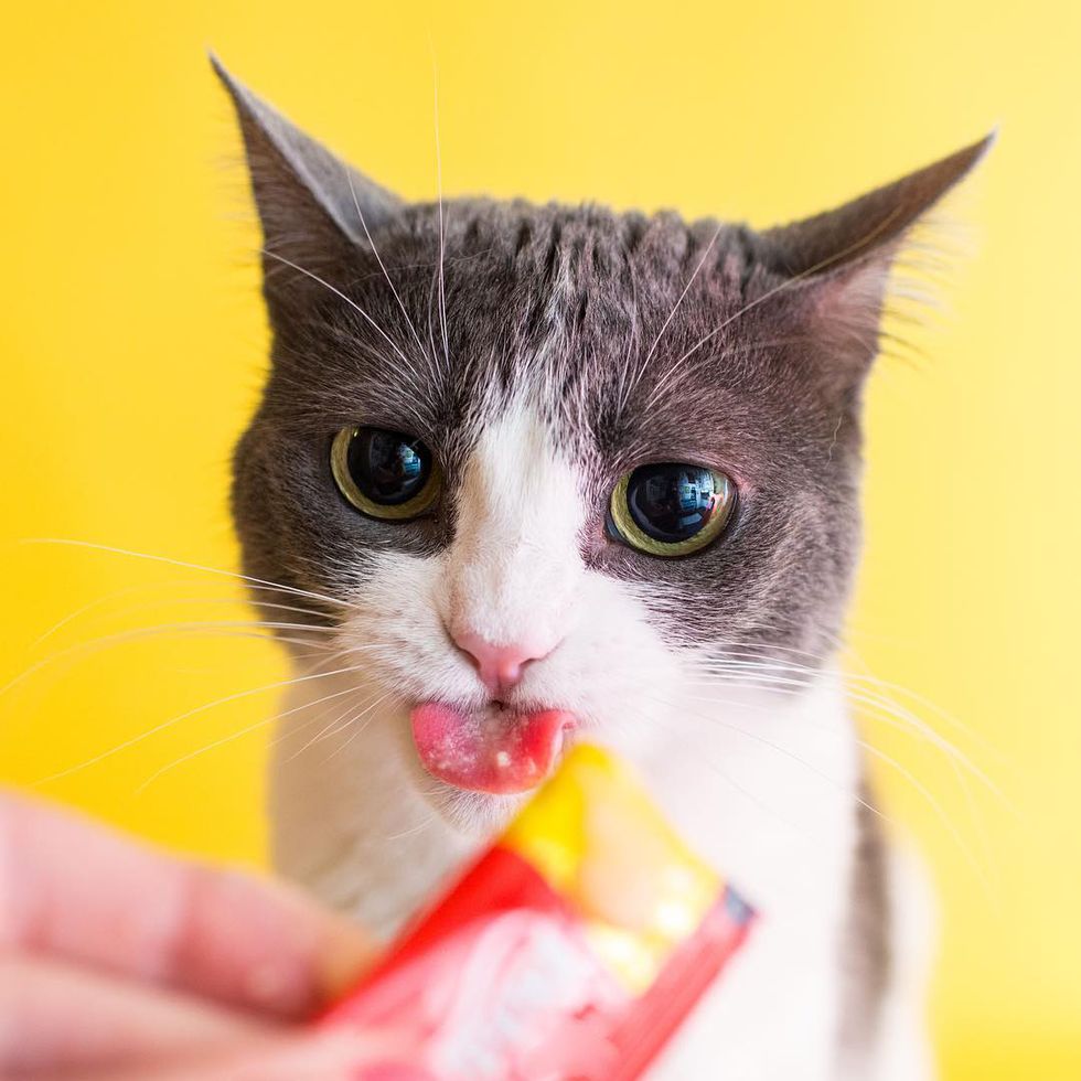 "She screams for treats. She lives to eat. Her pupils dilate so much when she eats Churu treats — it is hilarious. She'll walk up to the dogs and swat them out of her way so she can be closer to me," Casey told Love Meow.