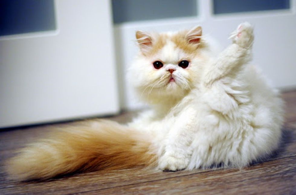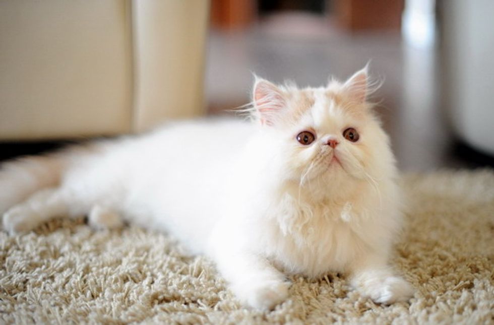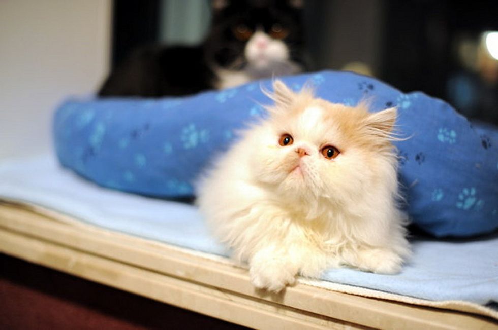 This lovely Persian kitty is named Simba. His mane and fluff have earned him a nickname, Little Lion. Simba is an affectionate little furball who loves people, craves for their attention and does not like to be left alone. Simba lives with two siblings in the house - Cow (a tuxedo) and Pearl (a Scottish Fold).