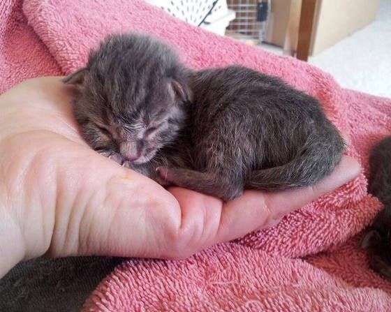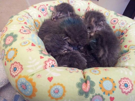 A litter of tiny gray kittens were given a second chance at life before they were even born.