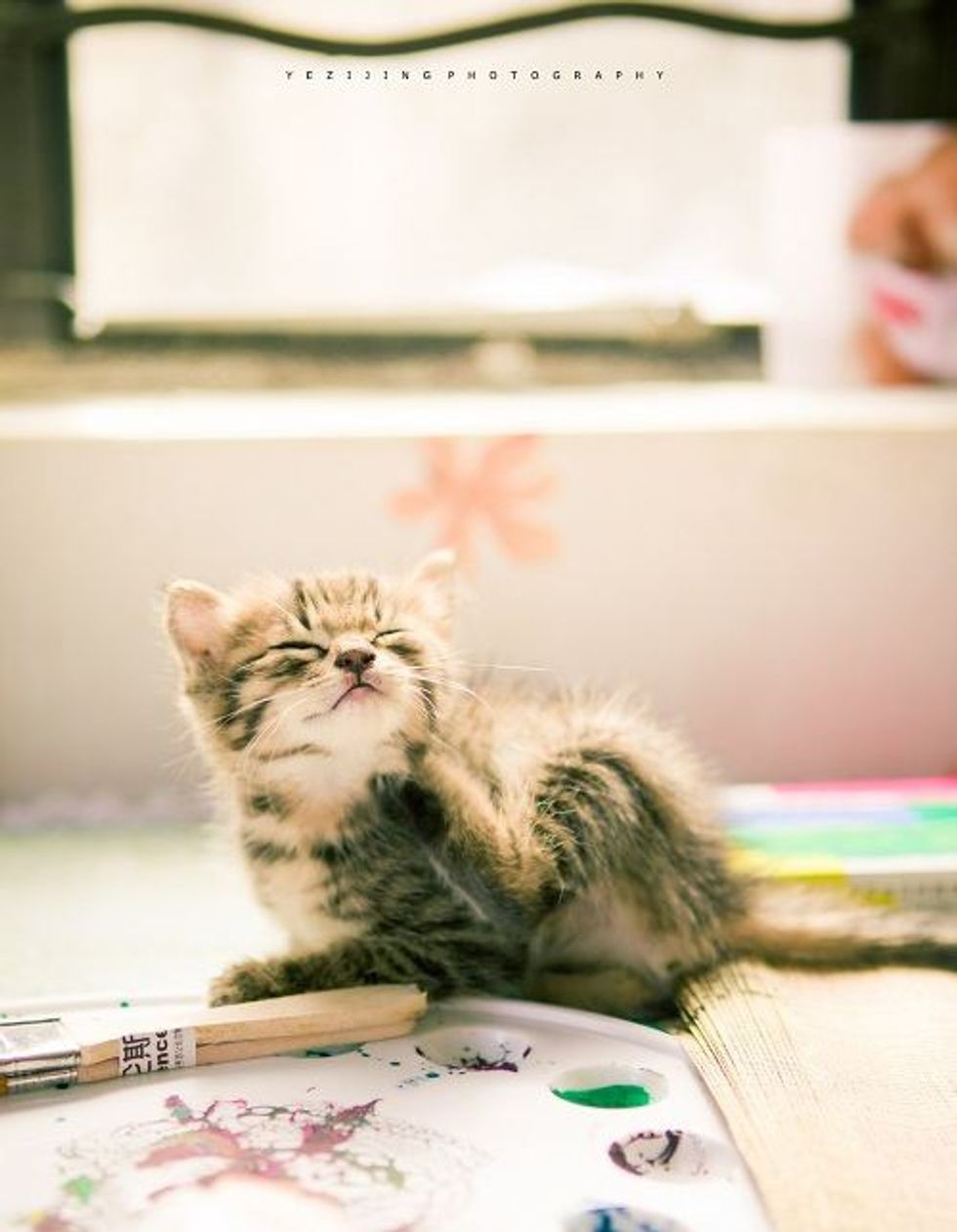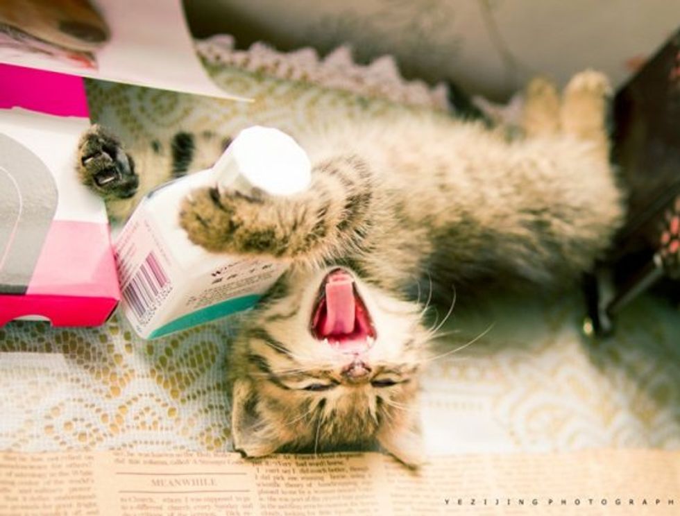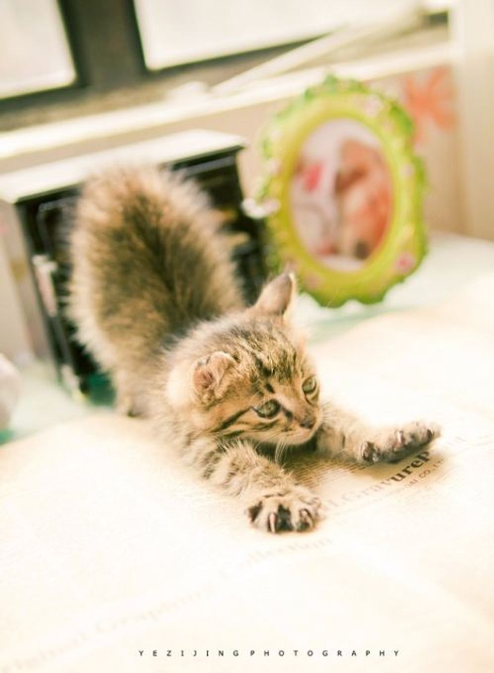 This little tiger was found next to a car tire about a week ago. "He is very small, sweet, clingy and super cute.... He would make a great family member in a good home and also a perfect model for photography," said Zijing Y., who is fostering the kitten.