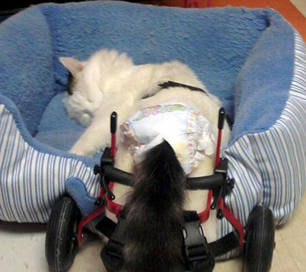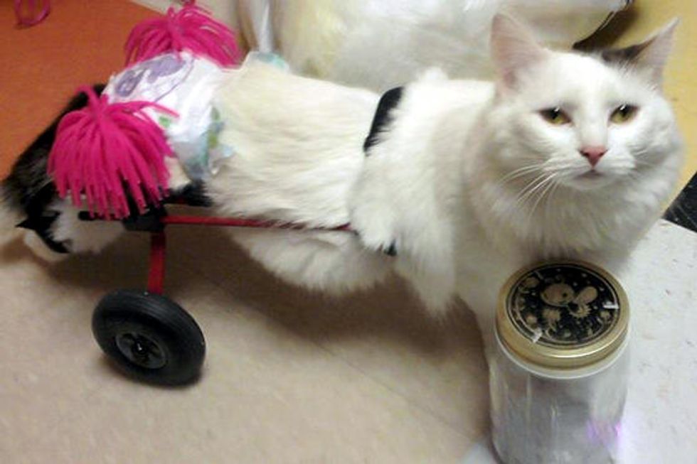 Smoochie the cat doesn't let her disability stop her. Being paraplegic, she doesn't want anyone to pity her. With love and a pair of wheels, Smoochie now lives a happy life that inspires many.