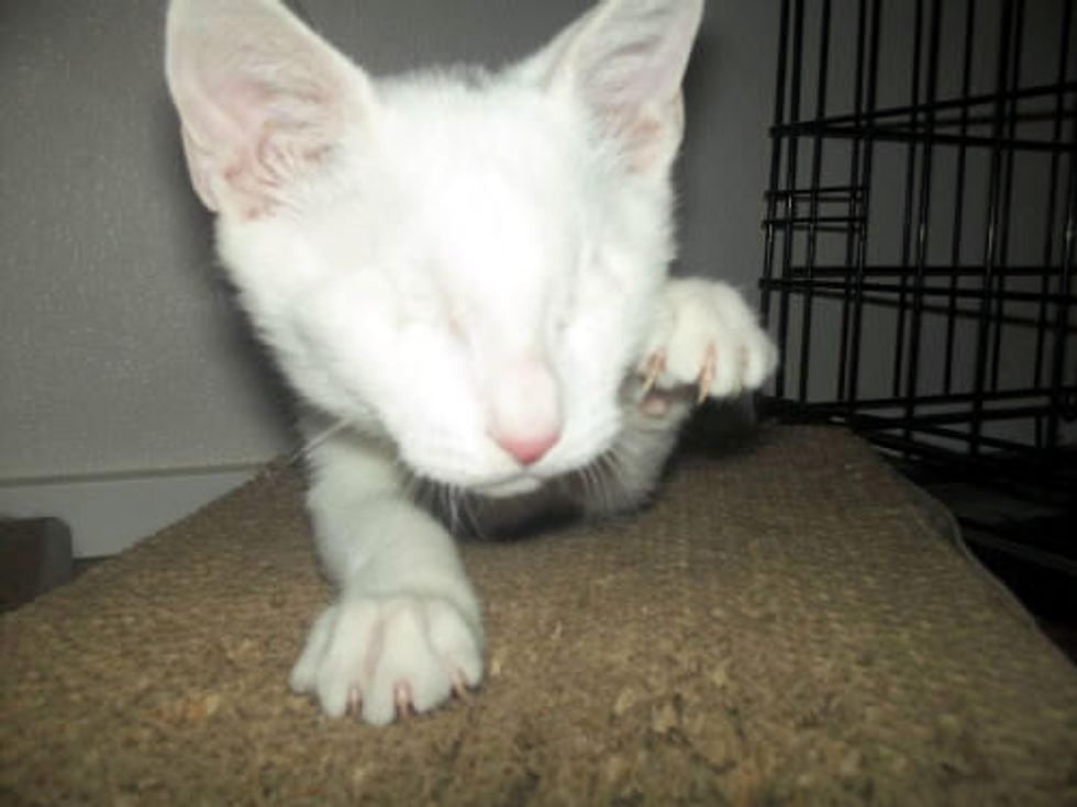 Little Smudge is an eyeless kitty who has gone through quite a journey before he made it in Blind Cat Rescue, his permanent home.