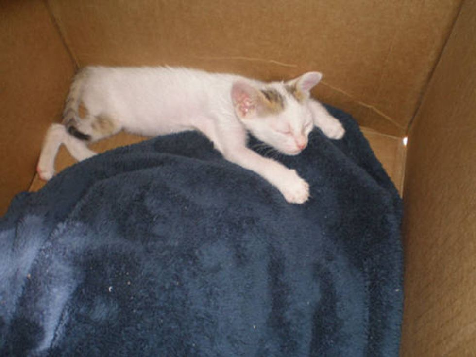 They made the kitten a comfortable place to rest in with a towel, water and food. She was so hungry that she just couldn't get enough of the food. "She ate like she'd never been fed before," he added.
