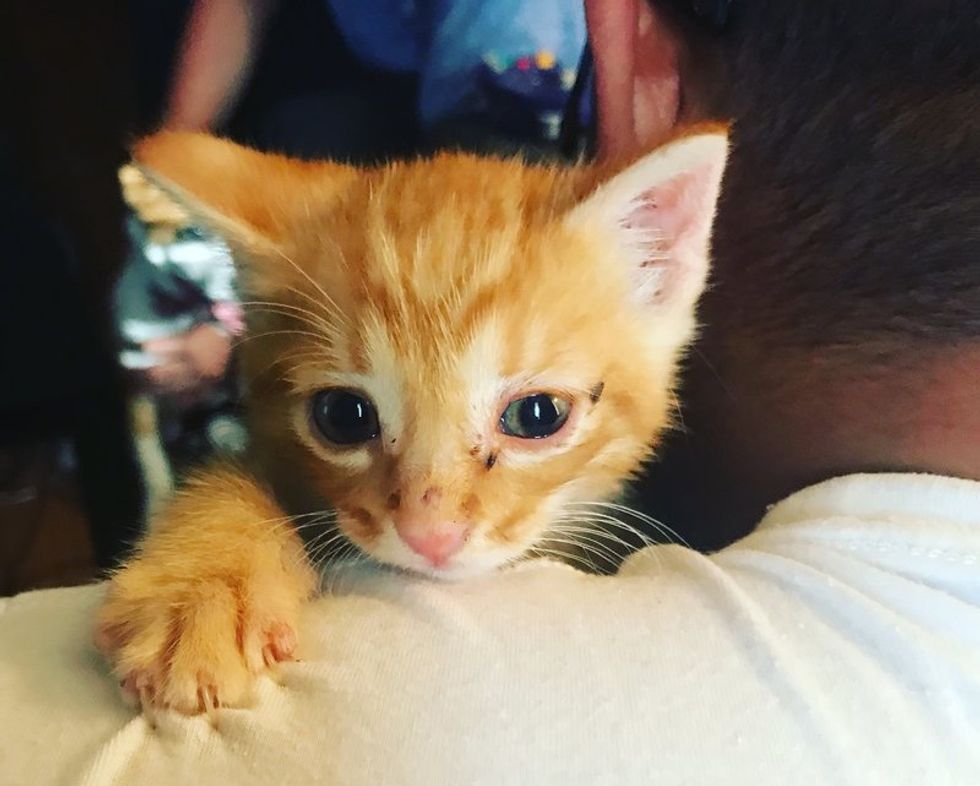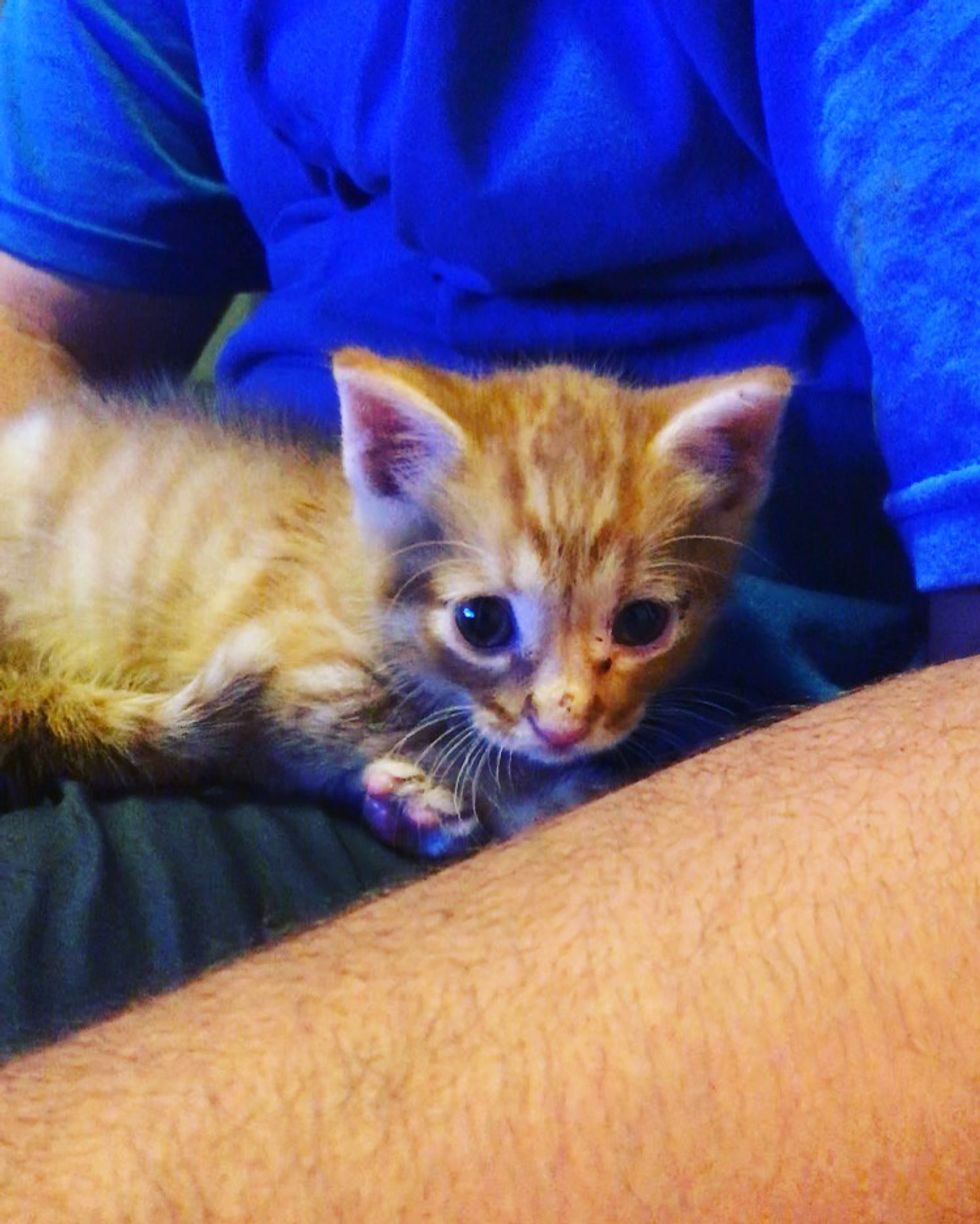 It was a bit of a surprise when the guy showed up at his mom's doorstep with a tiny ginger kitten craddled in his hands, but this wasn't the first time he brought home stray animals.