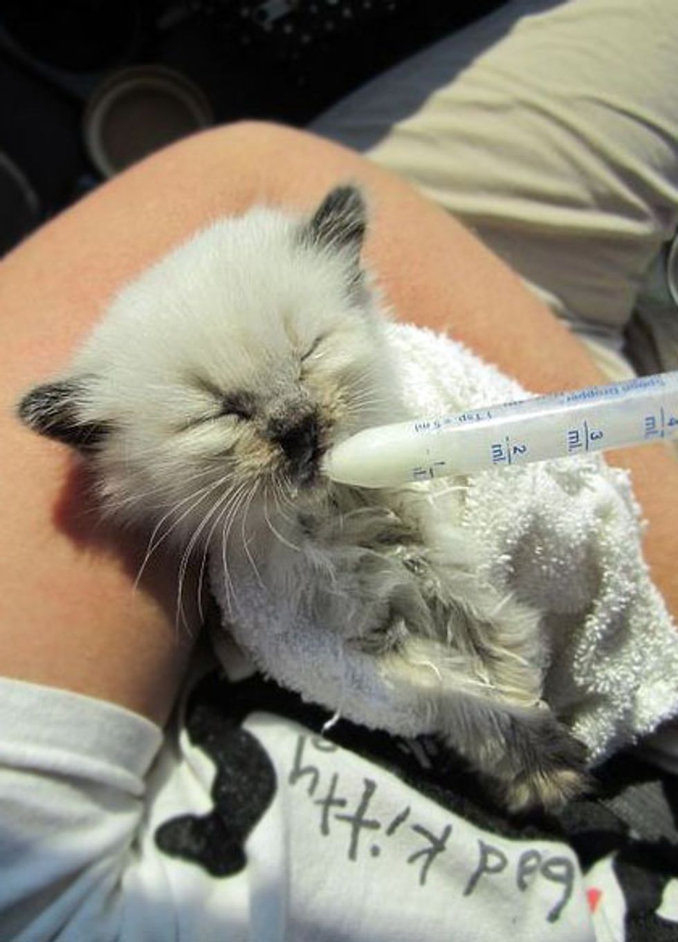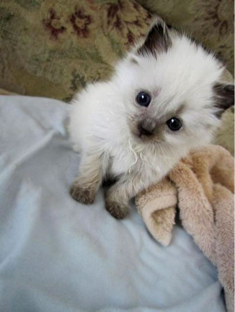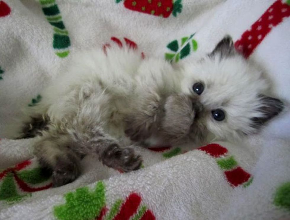 Little Sophie may have used a couple of her 9 lives, but there is a very happy ending to her story. She was spotted by Candi when she went to her aunt's house. The little seal-point kitten is a fighter. She was the only survivor from her litter and was tiny and sick, but she always has so much spirit. "It didn't take her long and she was bouncing around like a healthy little kitten," said Candi.