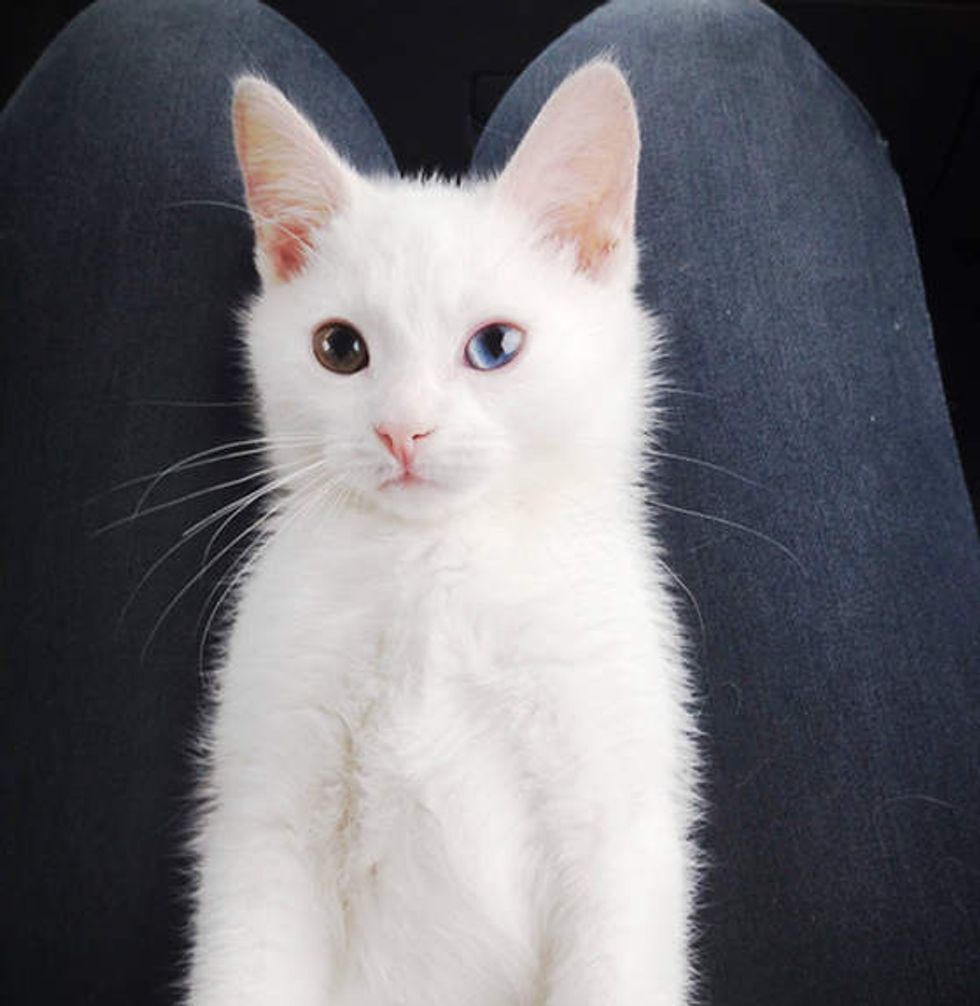 Meet Sparrow the odd eyed cat. It's hard to believe that this little cutie was the last to be adopted from his litter.