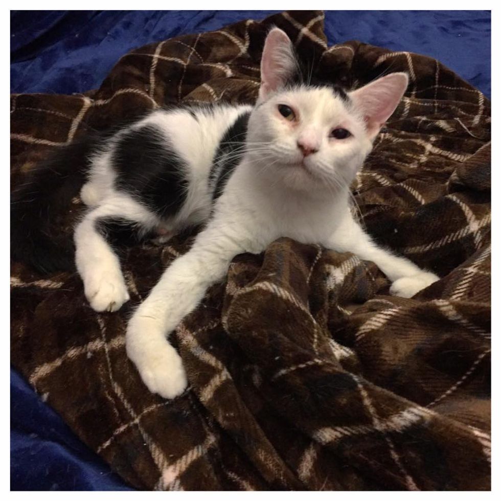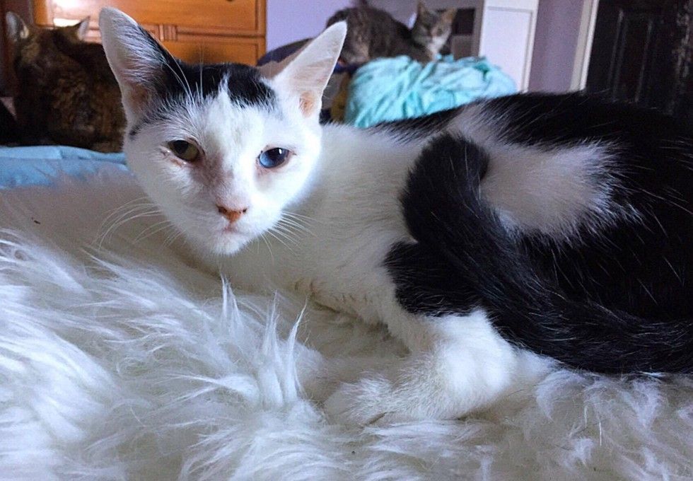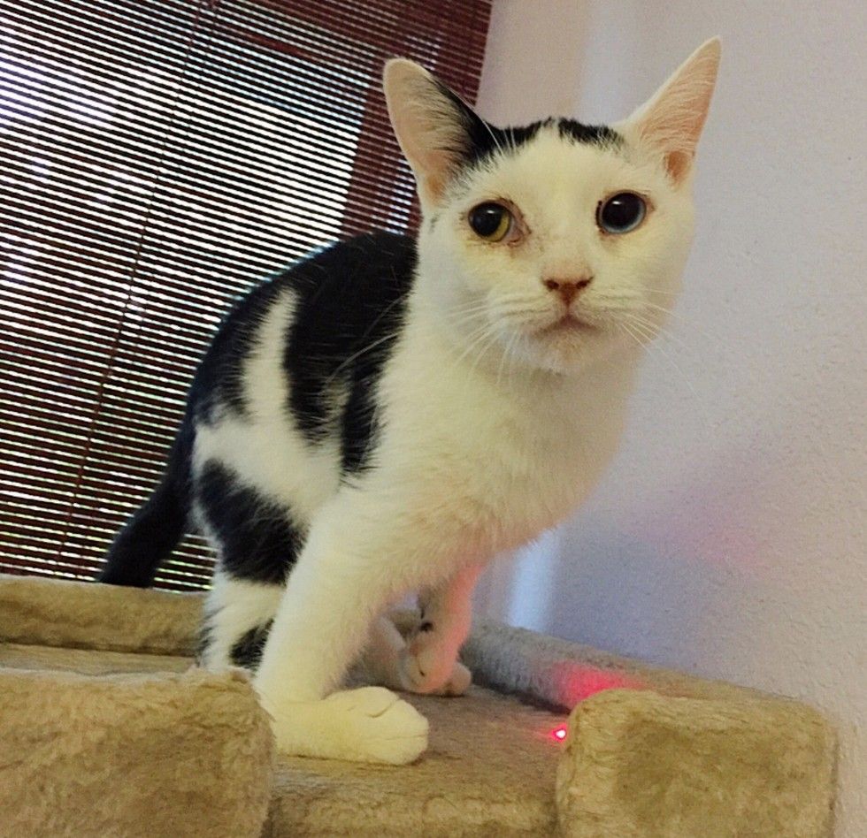 This wonderfully special kitty is now living the life she always wanted. She may look a bit different, but she would tell you she's purrfect, just differently abled.