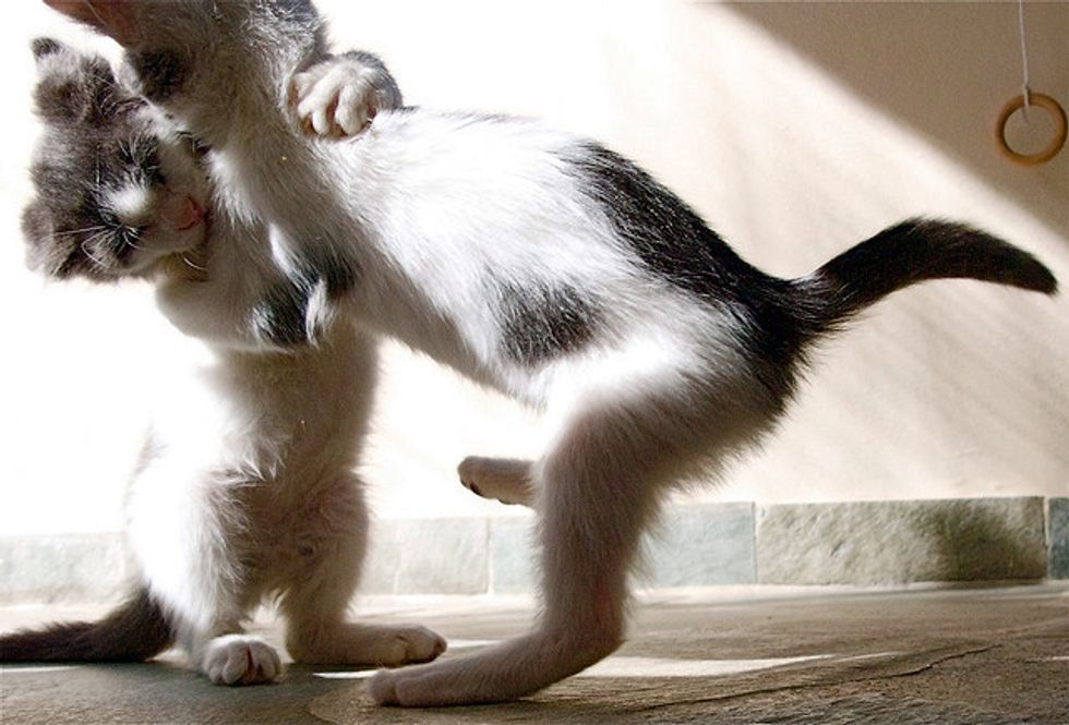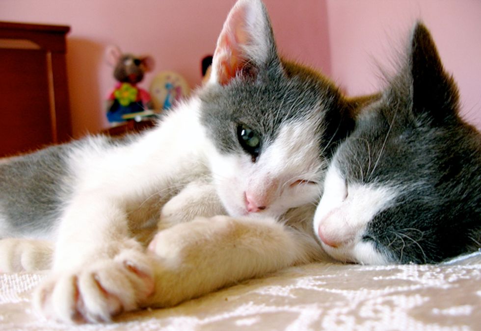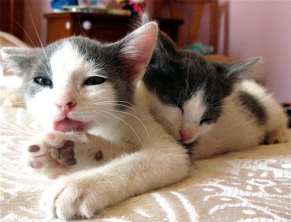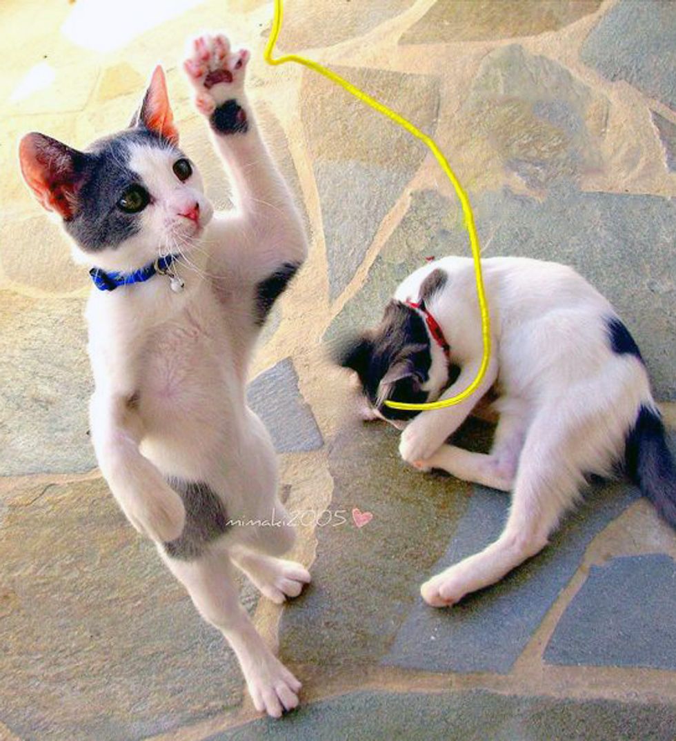 We fell in love with them and they have been living with us ever since. Their mother Koukla was taken to be spayed and that's when her life was saved because we found out that she had a severe infection that was eventually treated by the vet. The mother and her two boys are now part of our big family with four other cats.