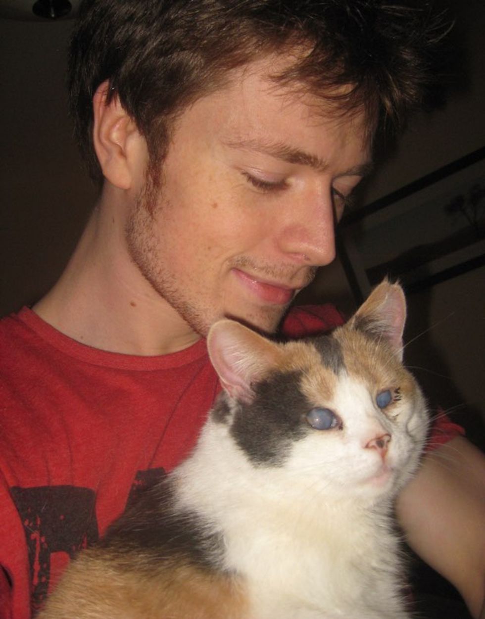 "This was taken the day I adopted her. She changed my life forever. I wasn't really a cat person either until I met her."