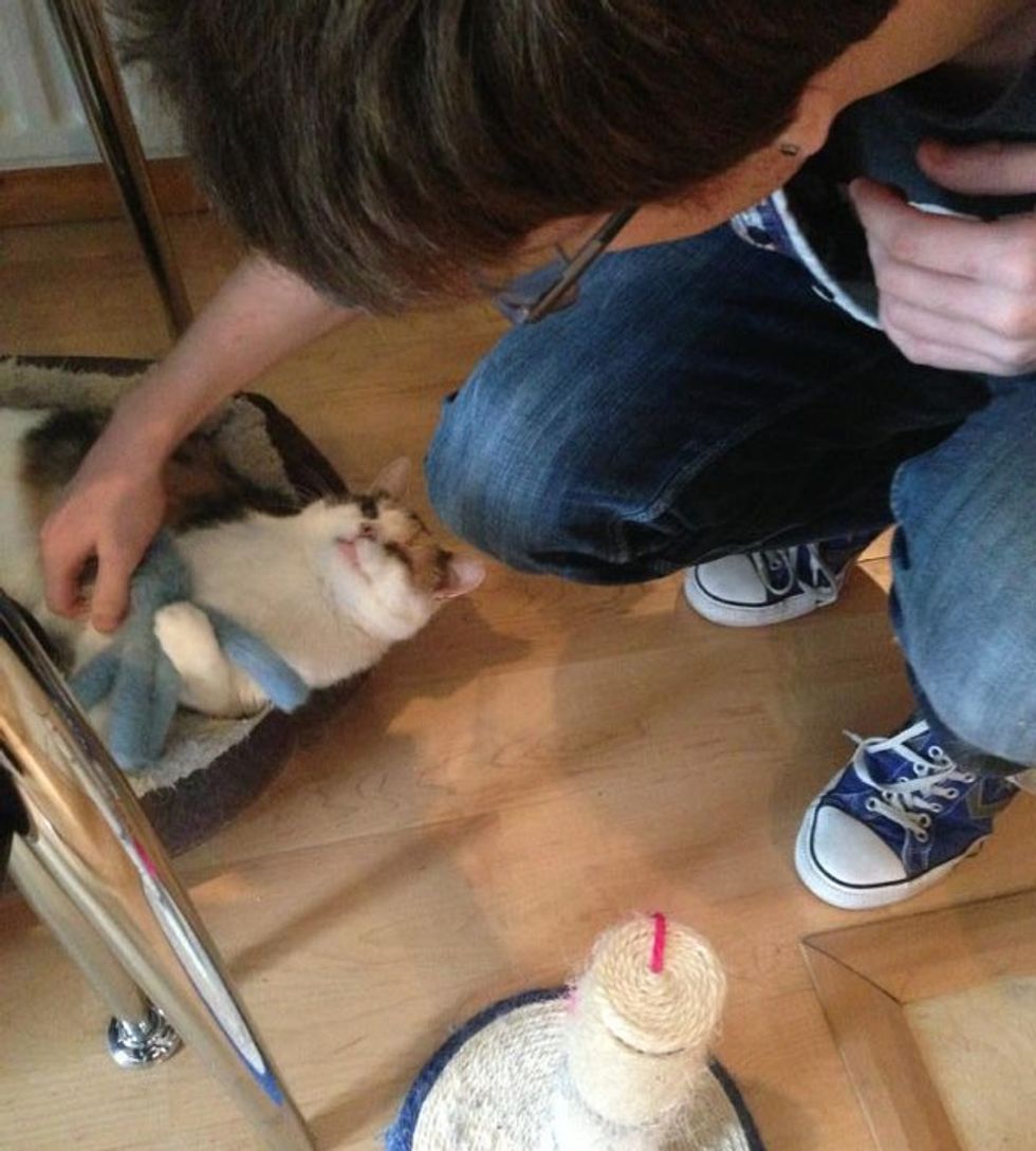 Patrick Corr wrote via imgur: "I didn't adopt Stevie when she was a kitten. I wasn't even looking to adopt a cat, but when I heard she badly needed a home, I couldn't resist."