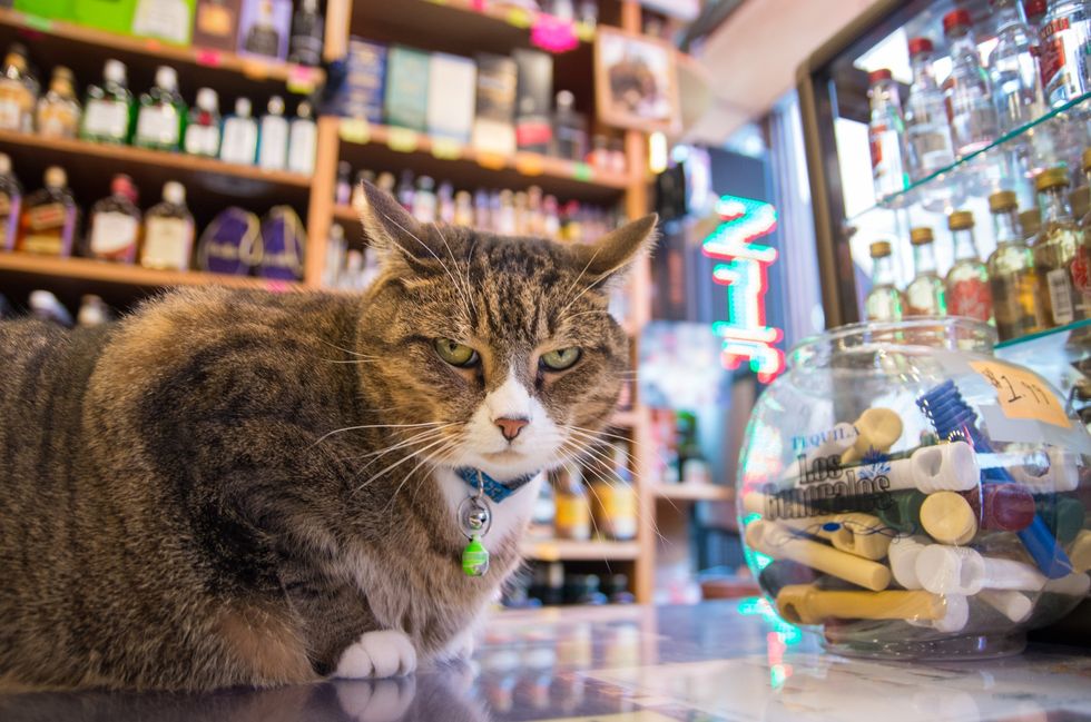Meet Jack Daniel. A hefty, sometimes ornery tabby cat who reigns over the humans—and occasional dog—at Wine Heaven in Manhattan, New York.