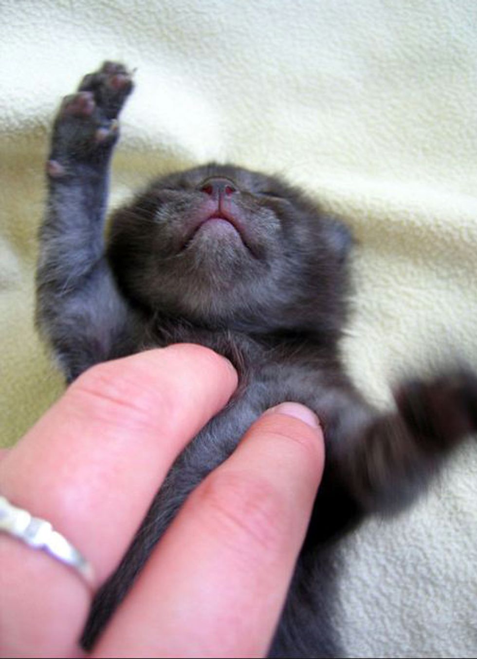 When the kittens were about 11 days old, their eyes started to open and they also started to get some strength in their little paws. "They cried like banshees when I took them away from the nest, but when I tried to put them back down, they were on me like velcro. Amazing to see all these survival instincts taking place in a blanket-lined planter in my bedroom," said Stacey.