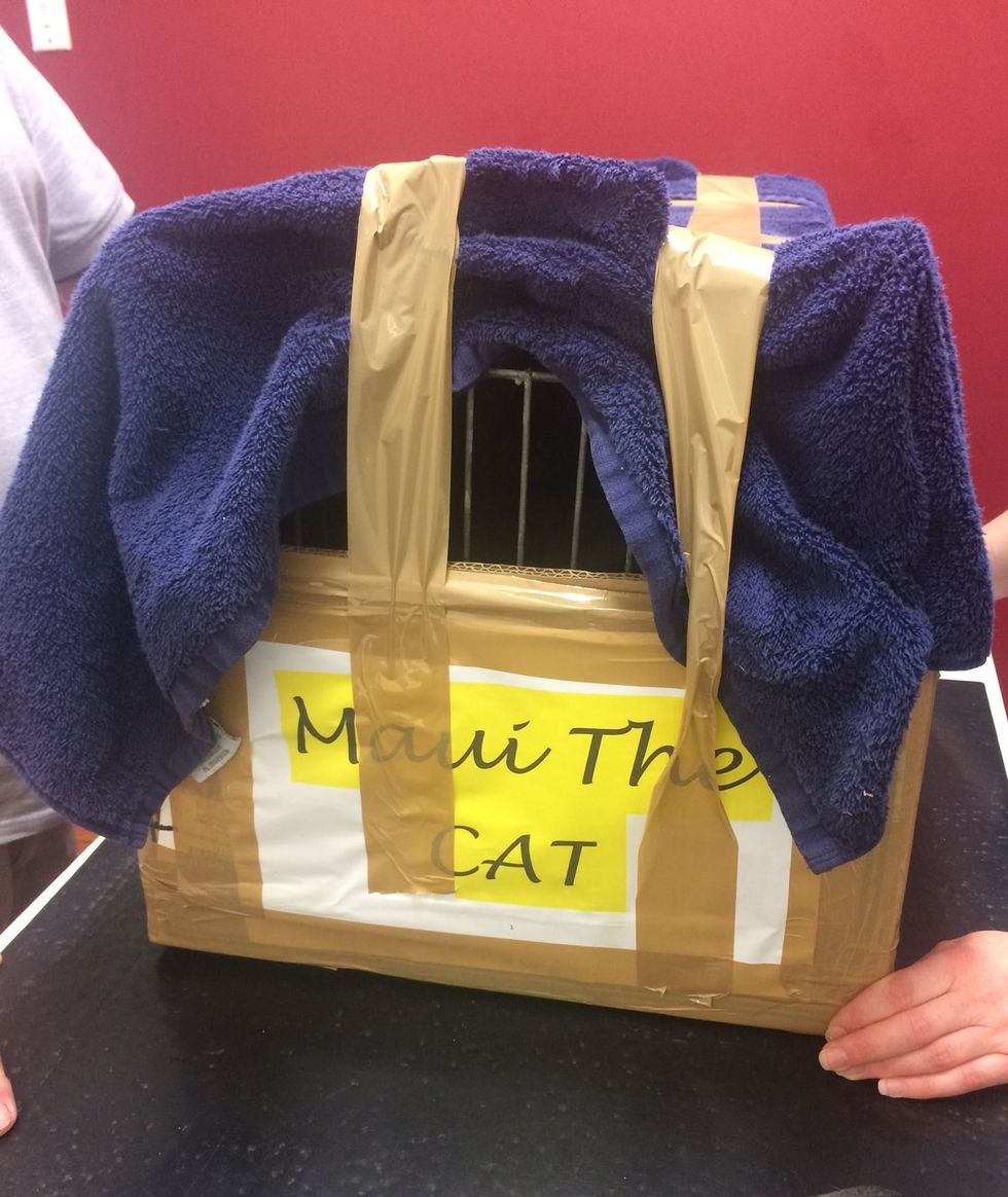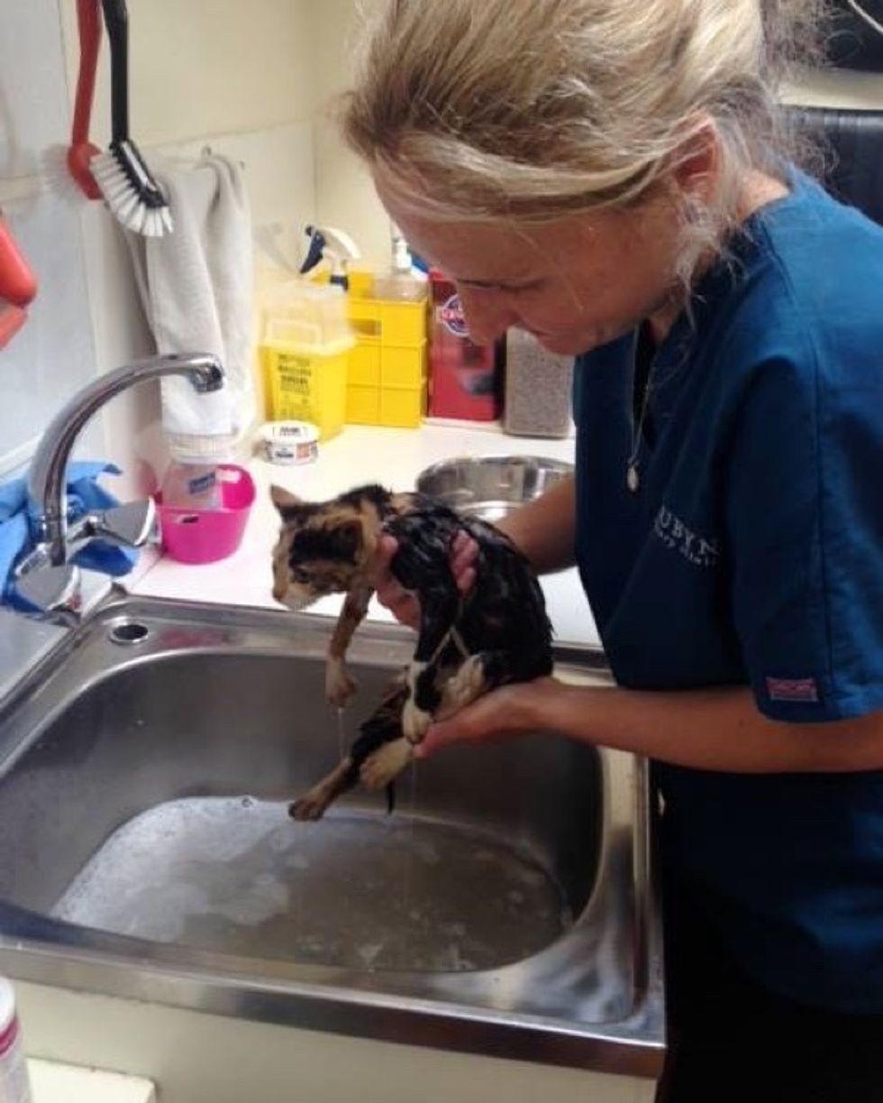 They managed to coax the kitten into a cage, and later got her a first class ticket onto a helicopter to the St. Aubyn Vets for a health check.