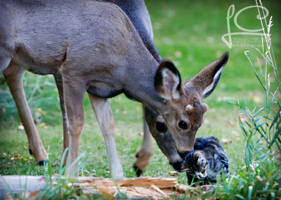 “I was down at Scout Island last night… having a wonderful time. Just as we were finishing our shoot, we saw two deers right near the preschool… This little cat came running out,” wrote Laureen Carruth, photographer at her blog.