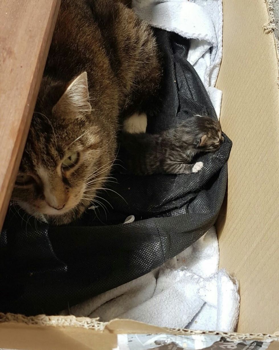 "One day my friend found this little kitten on her balcony," reddit user Ottmarhitzfeld said. The cat mother refused to come inside the house, so they set up a bed for them, but the momma had no interest of staying for long.