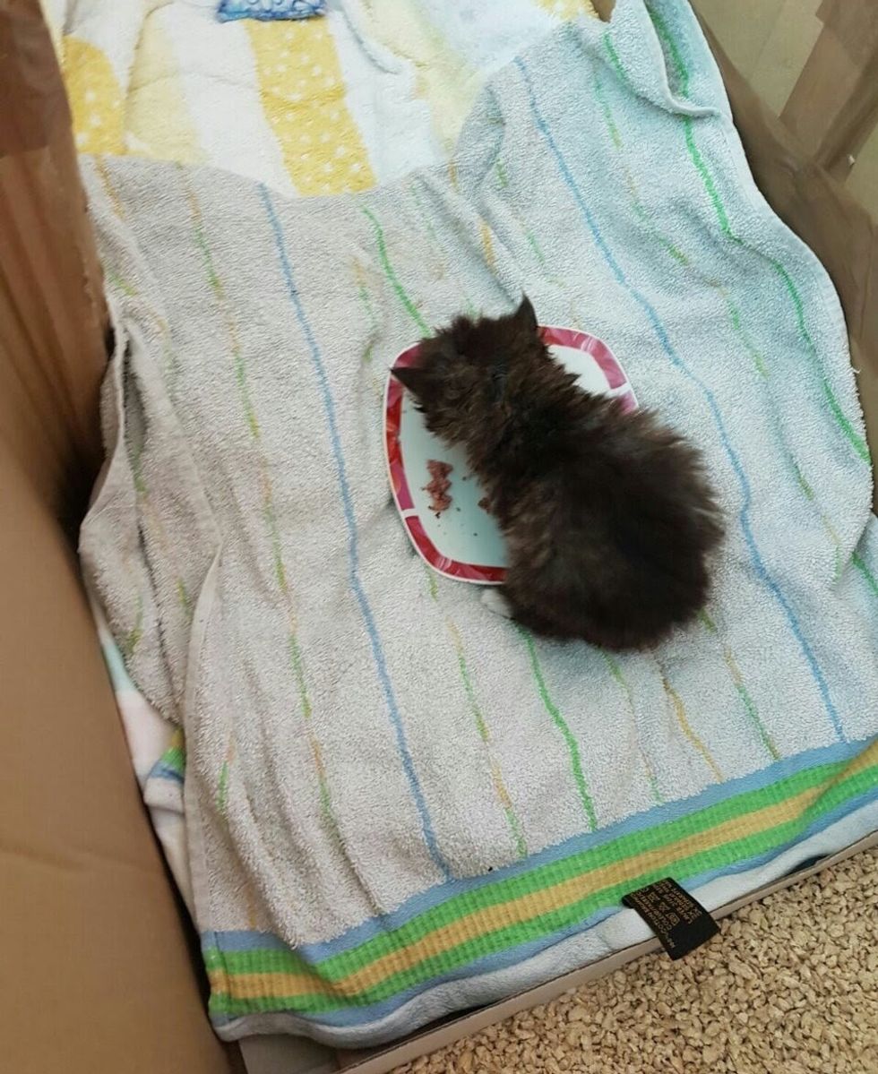They got the kitten inside, gave him a new warm bed, and began caring for him around the clock.