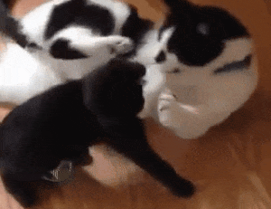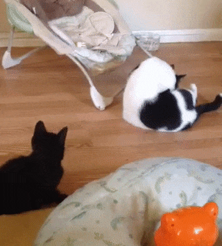 "At first my cat ClownBoy did not want anything to do with the younglings."