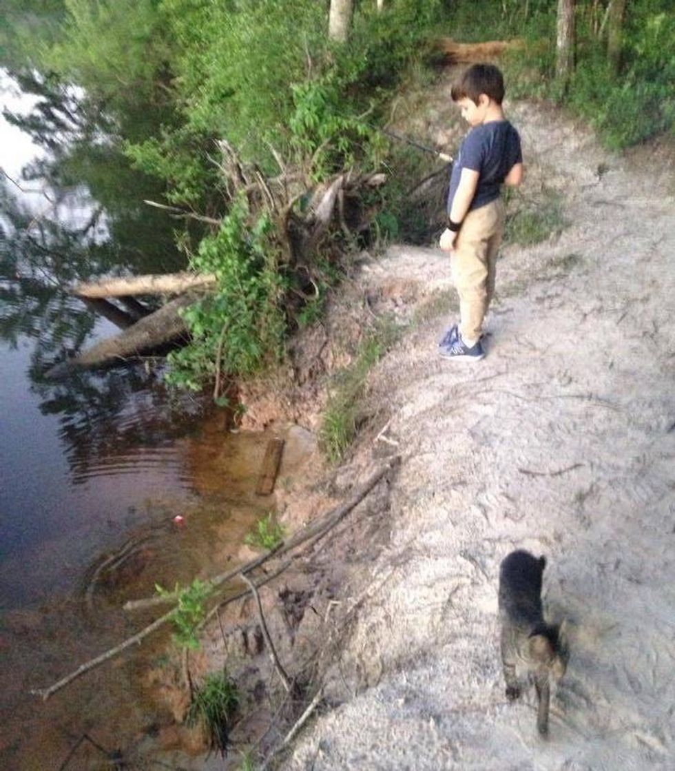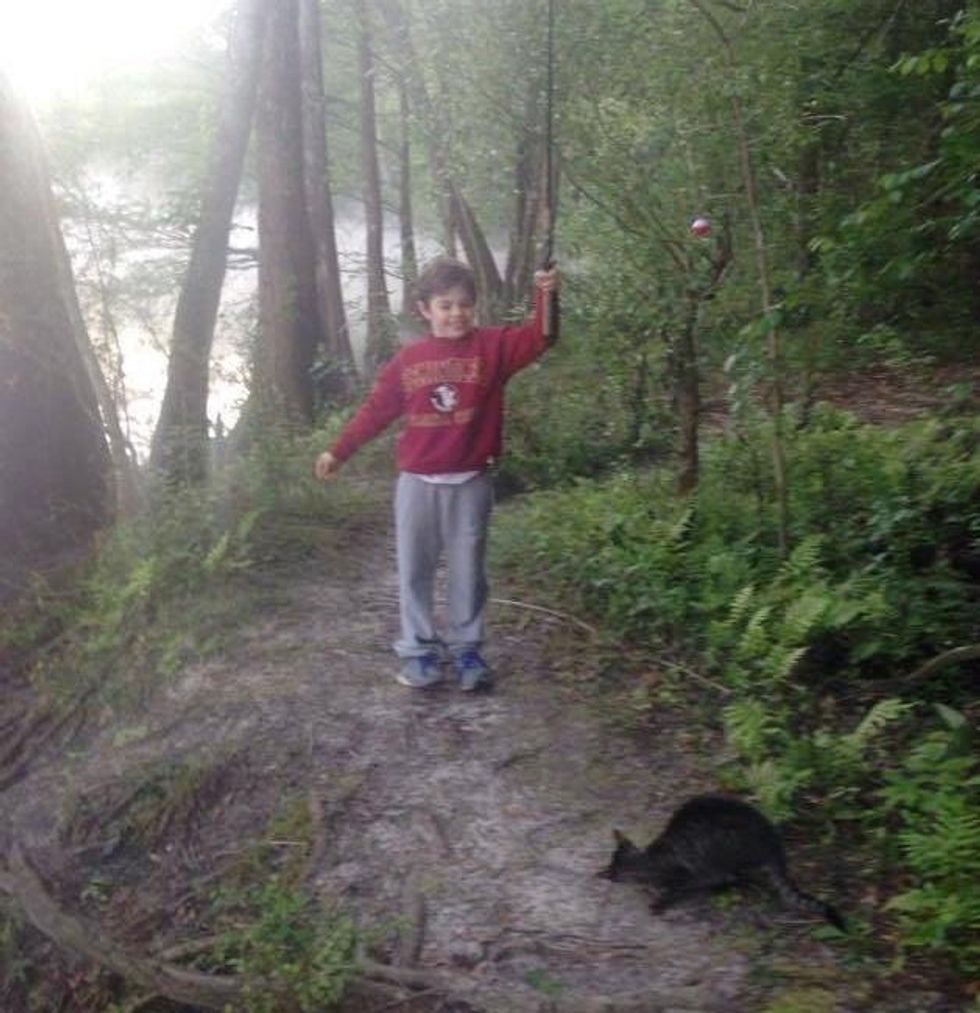 "My son gets to work trying to catch some blue gill to feed the cat since we only brought enough food for dinner and breakfast," Michael added.