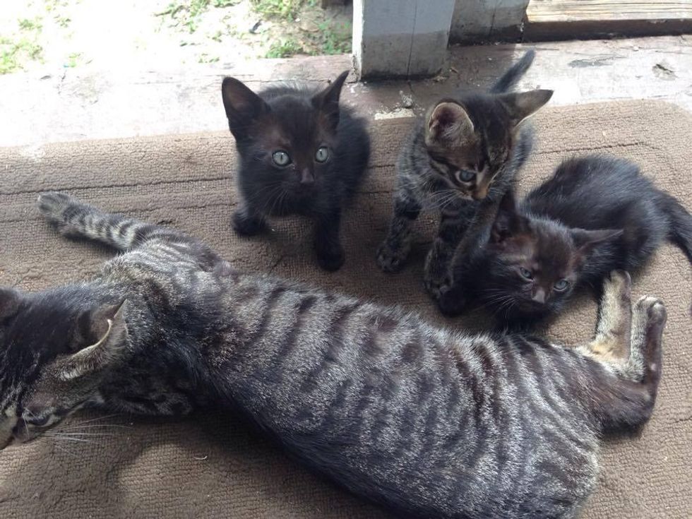 Mama and her three babies are happy and safe now. They are taking the kitties to the vet this week and will have them spayed/neutered when they are ready.