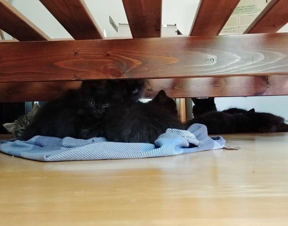 The kittens were very shy as they hadn't had much human contact. Lisianne gave them a room to settle in and reached out to her local rescue, Chatons Orphelins Montréal, for help. She wanted to get them all vetted, spayed and neutered and find them good homes.