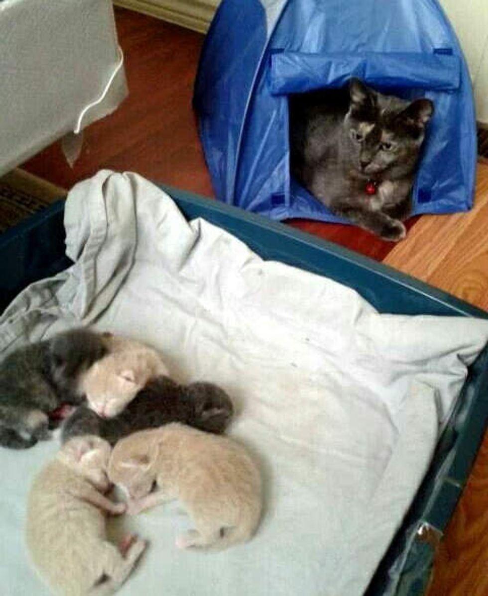 A stray cat followed a family home, but she didn't just come alone. In a few weeks after they took her in, she brought 5 tiny little surprises into the world.
