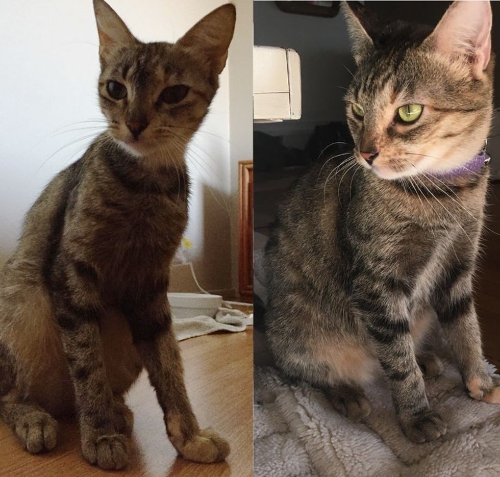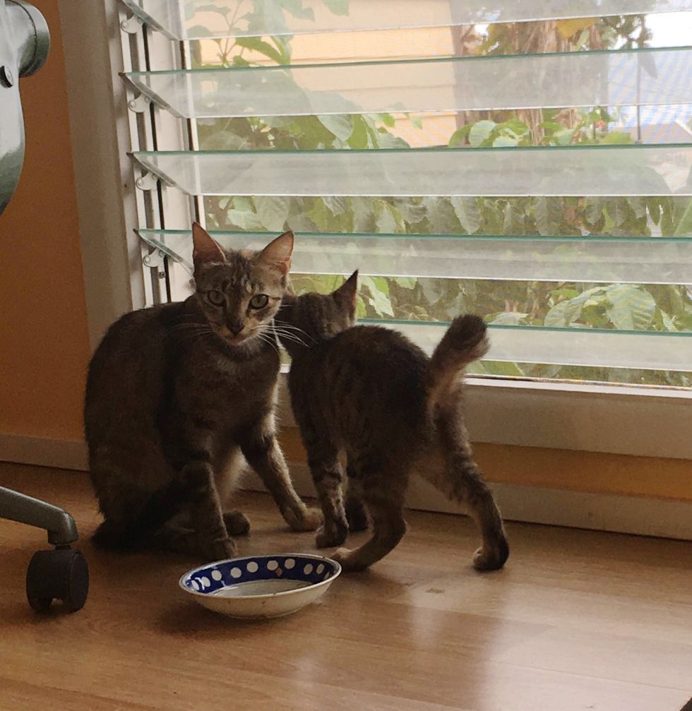 The tabby, named Honey, showed up at Calista's home while she was in Hawaii. She came with two little 3-week-old kittens. They were very timid and wouldn't let anyone near them.