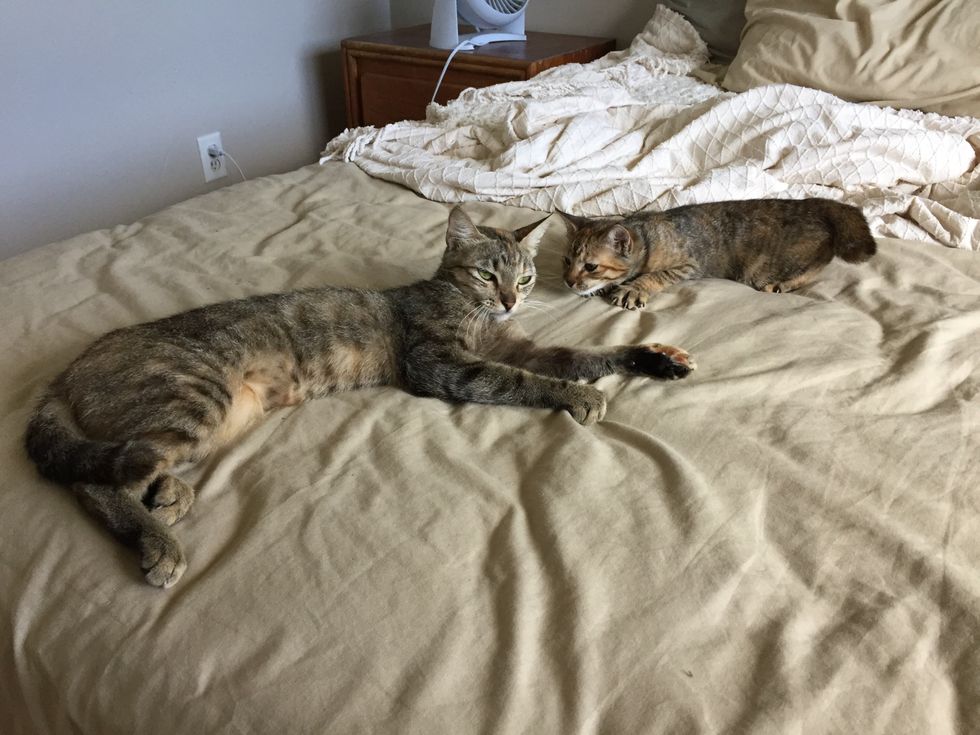 They took Honey and her kitten Pippa in the next morning. After exploring every nook and cranny, Mama and her kitten took over their humans' bed as their own.