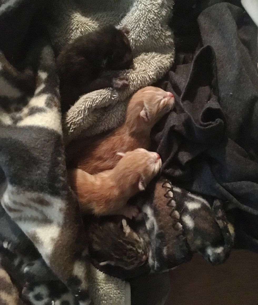 "We would fill socks with rice and microwave them, then place them around the nest so that they would have plenty of heat sources."