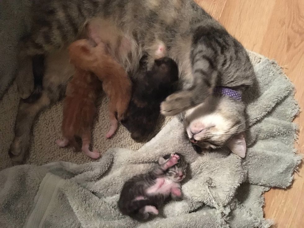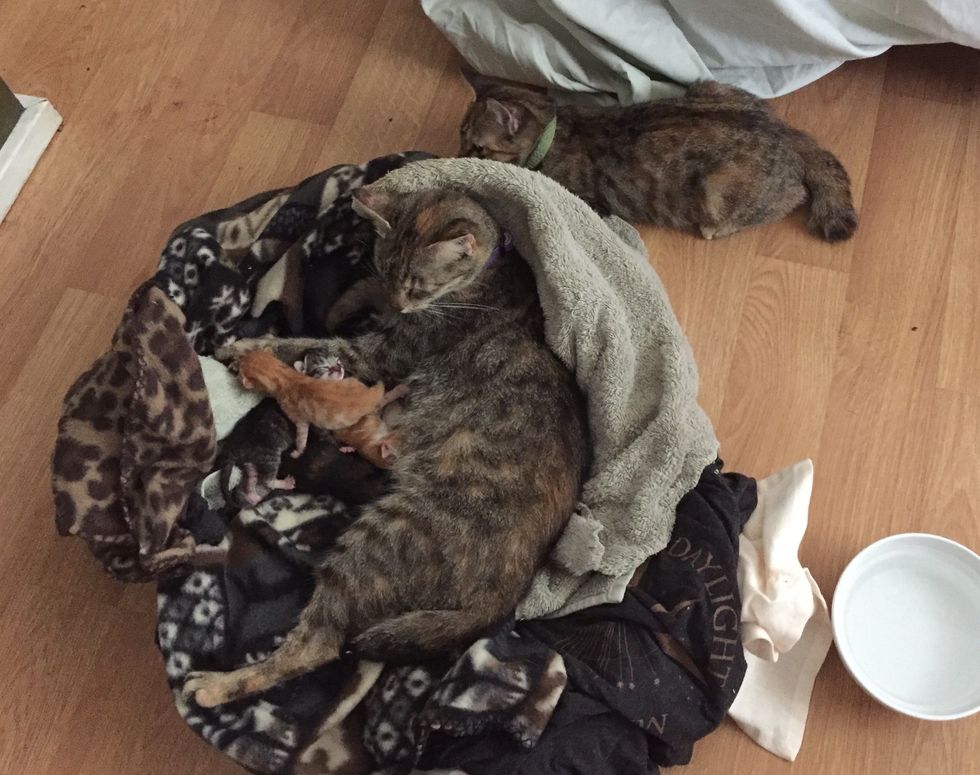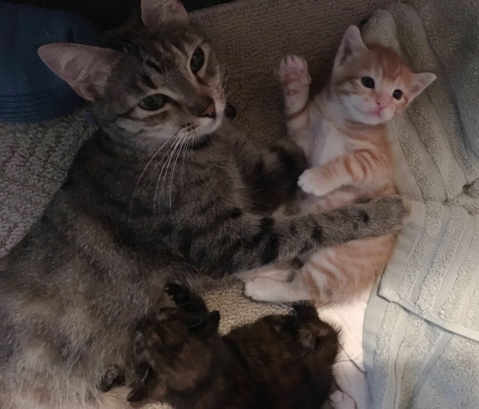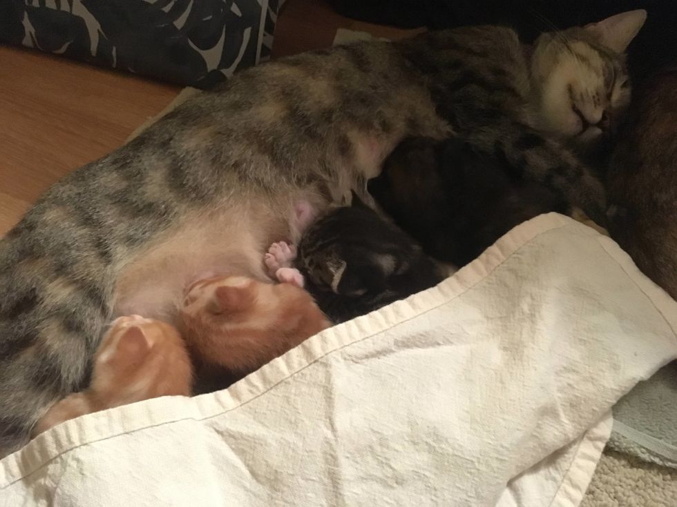 When the kittens were big enough, they were spayed/neutered and went to good homes. Mama was done having kittens for good.