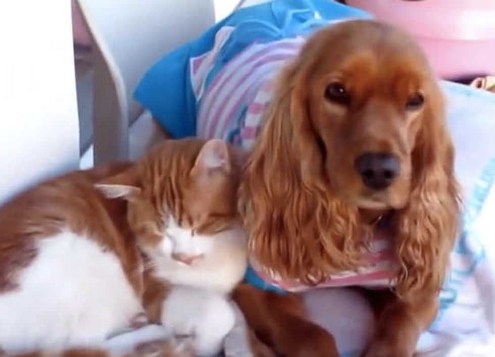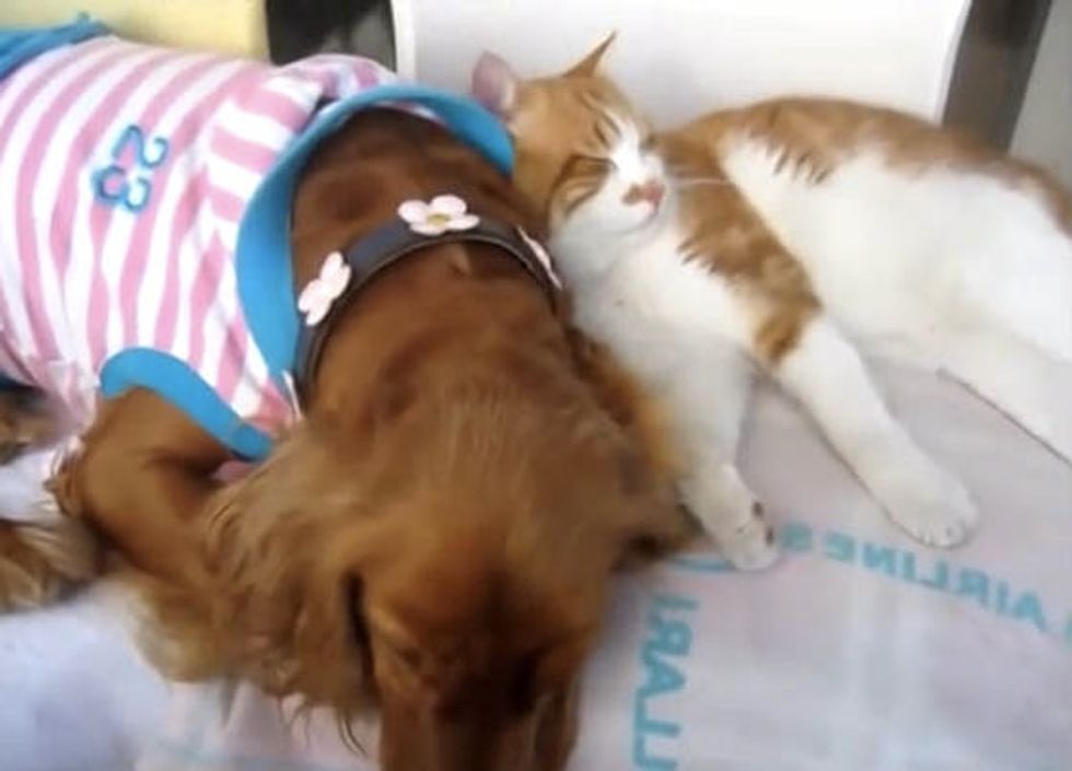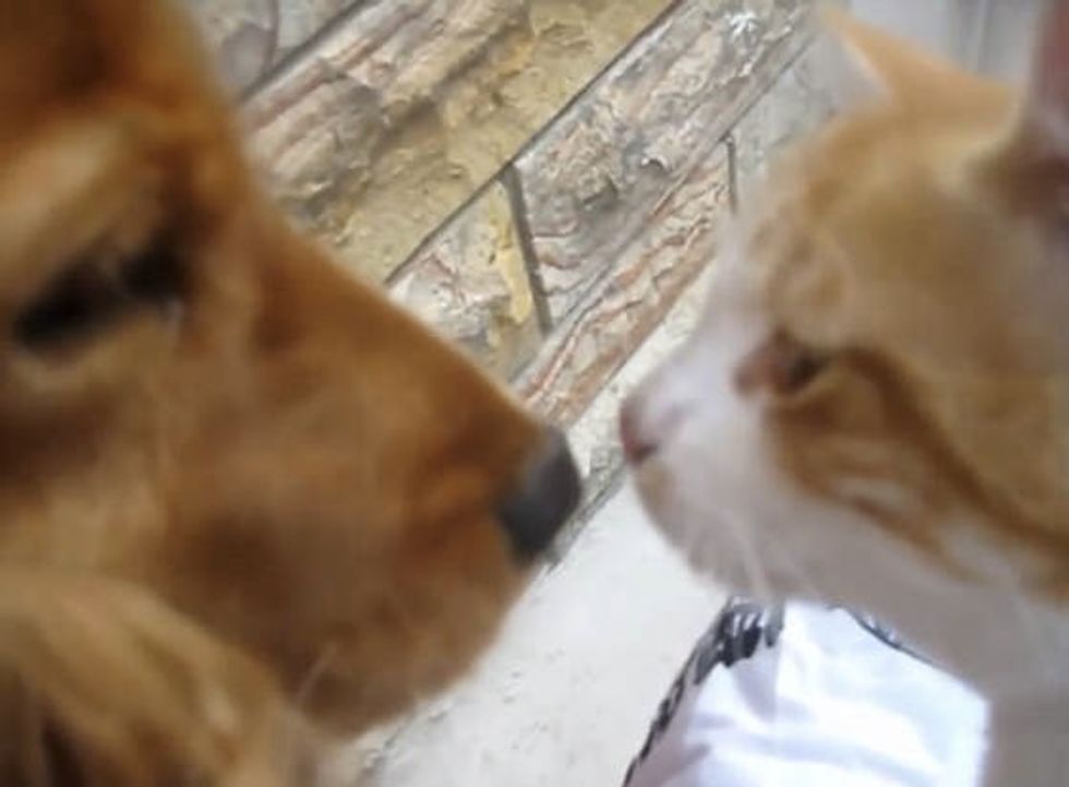 When a stray cat met a family dog, it was love at first sight. "I came to know this cat while taking my dog for a walk, (and) it started following us," said the human via YouTube. Eventually the cat followed them home.