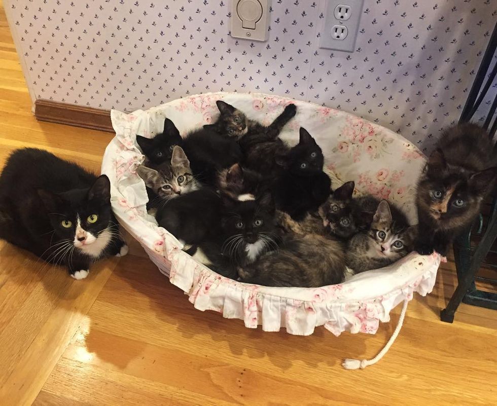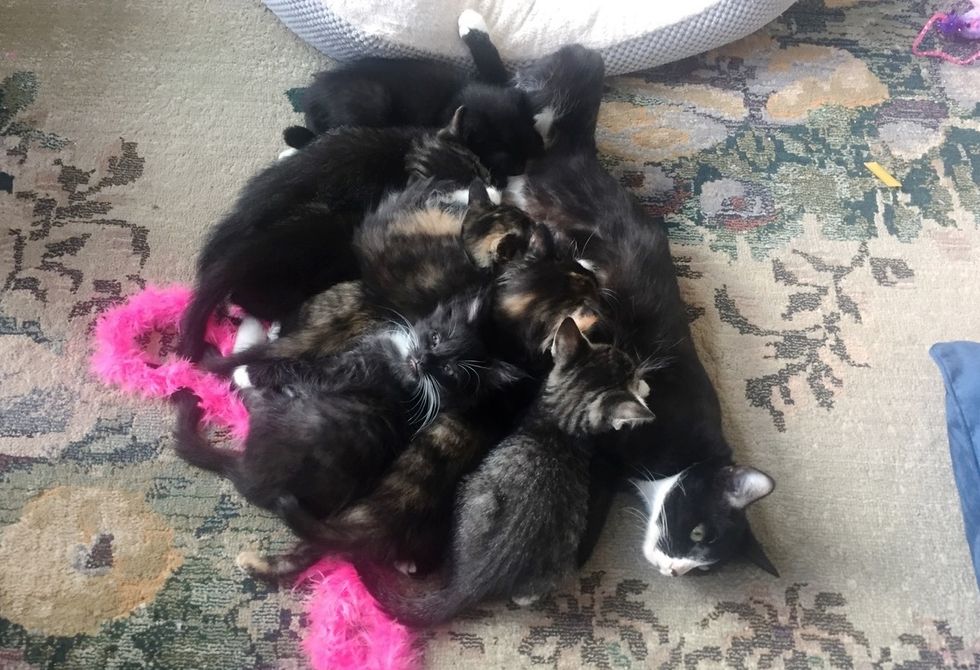 Within a few minutes, the furry family of 10 went from tired and hungry to happy and playful.