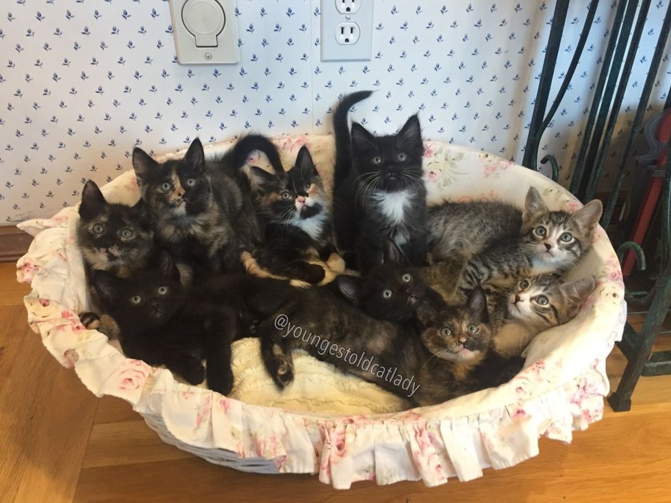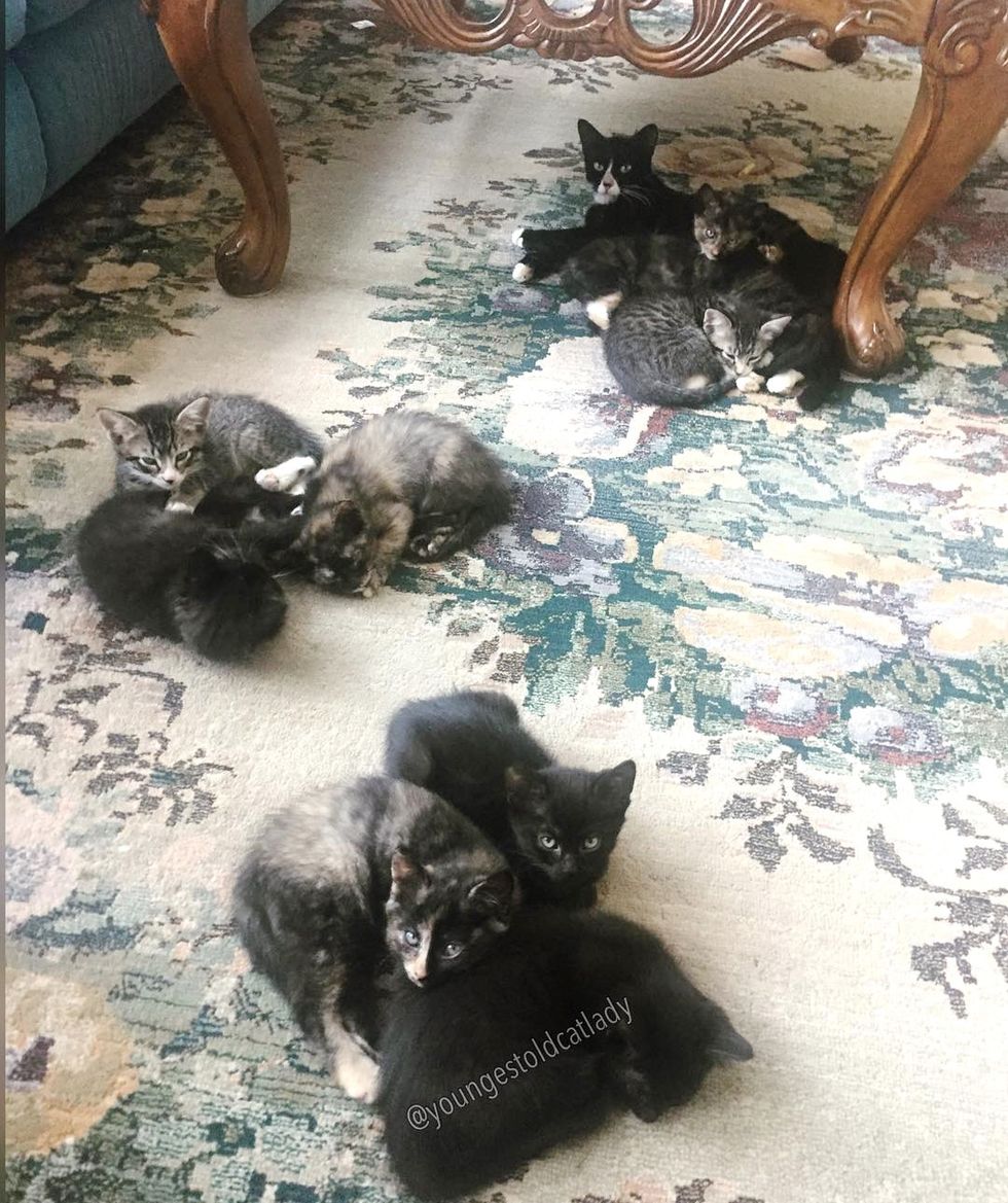 "Prairie was found with her 9 kittens who were 6 weeks old. She was so malnourished from trying to feed her kittens while not being fed herself," Ashely of @youngestoldcatlady told Love Meow.