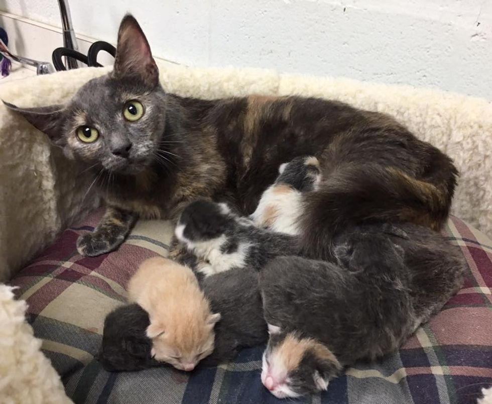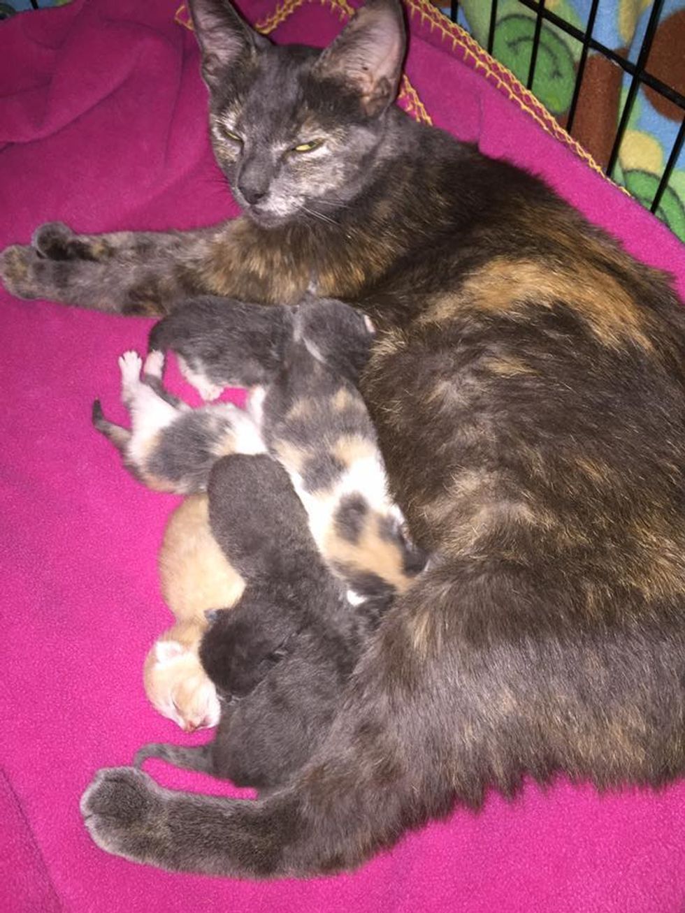 She gave birth Tuesday night to five healthy babies. One kitten fought hard but didn't make it.