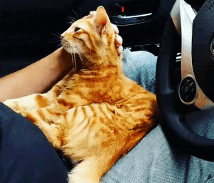 A ginger cat hopped into a woman's car when she had a door opened.