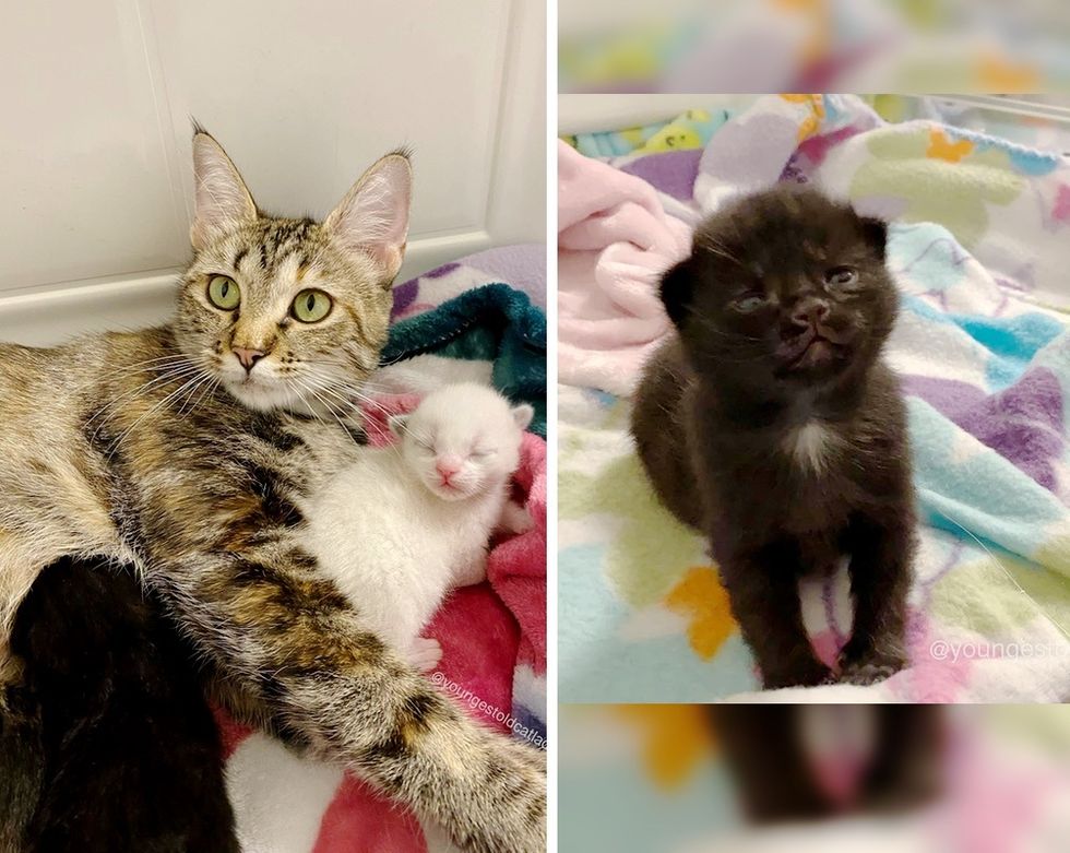 Two weeks later, Ashley woke up to the cutest surprise in the cat room. "Birdie had her babies overnight. I had put a basket with blankets in the bathroom in case. She felt more comfortable in a quieter darker space, and sure enough, that's where I found them that morning," Ashley shared.