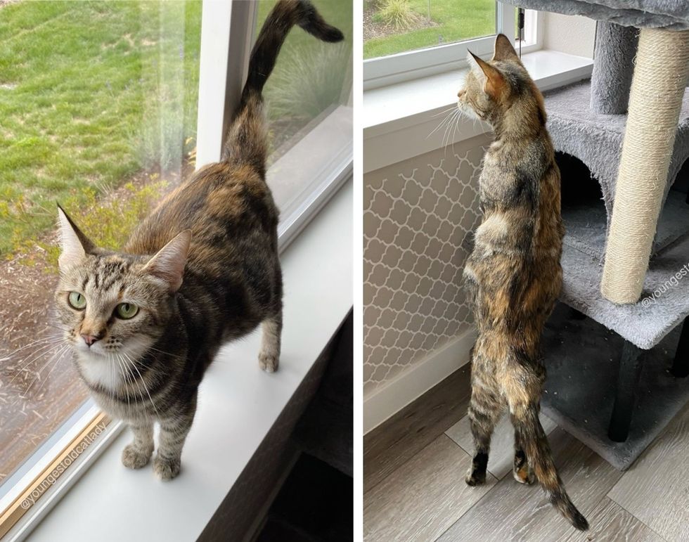 "Birdie came from living in a barn, so her instincts are to protect herself. Creating a space where she feels like she can see her one entrance makes her feel secure," Ashley shared with Love Meow.