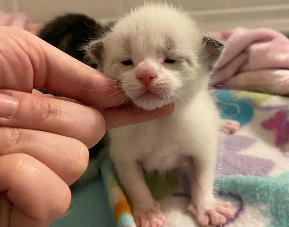 A week after birth, the kittens almost doubled in size. Their eyes hadn't opened yet, but the little sassy bundles of fur had figured out how to hiss, showing off their mighty, feisty cattitude.