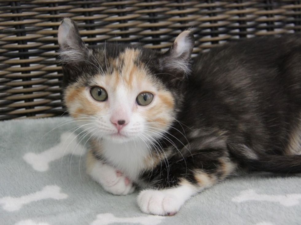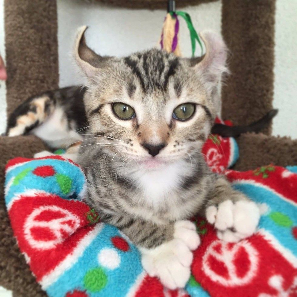 The mama cat, affectionately named Mrs. Hemingway, is a beautiful calico with extra toes on her paws, but her kittens have more than just extra digits like their mom - most of them were born with ears, which curl back.
