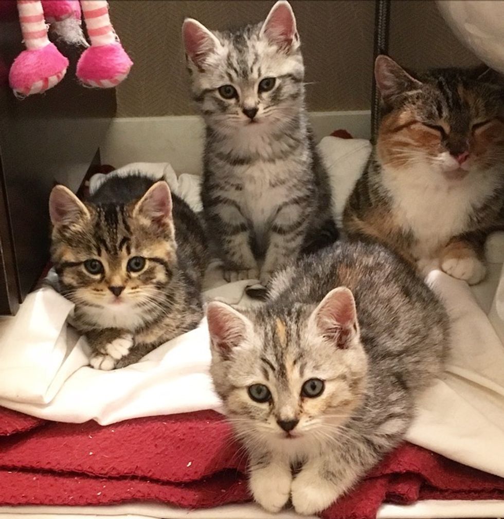 Mama Asha is completely dedicated to her babies. She keeps them plump and clean, and even before the rescue, she made sure her kittens always had a full belly.