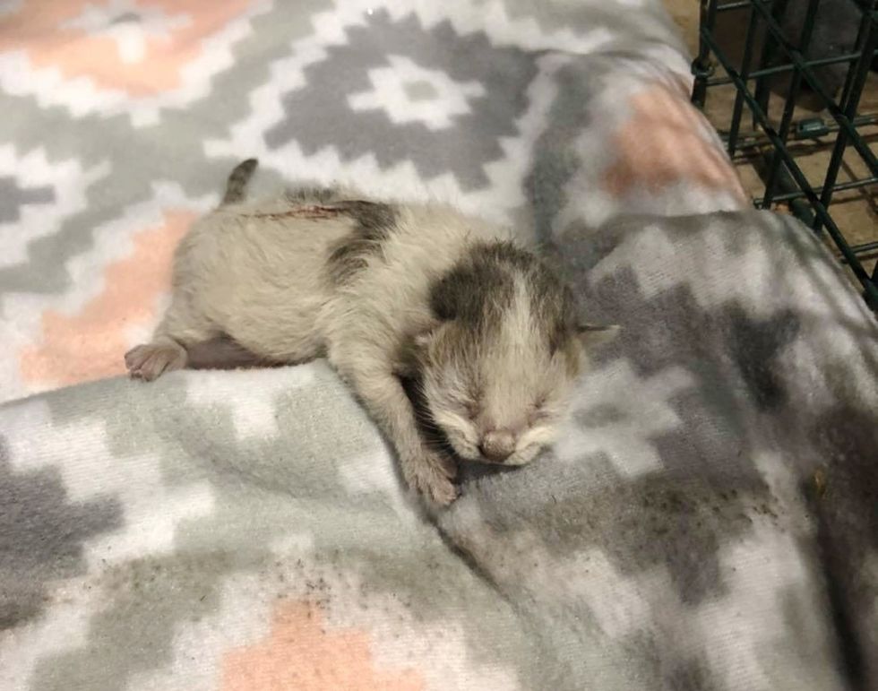 Employees could hear the cries of a tiny kitten but couldn't get a closer look. "If anyone got within four feet of momma's plywood 'house', she would come charging out, growling and ready to attack," Catsnip Etc shared with Love Meow.