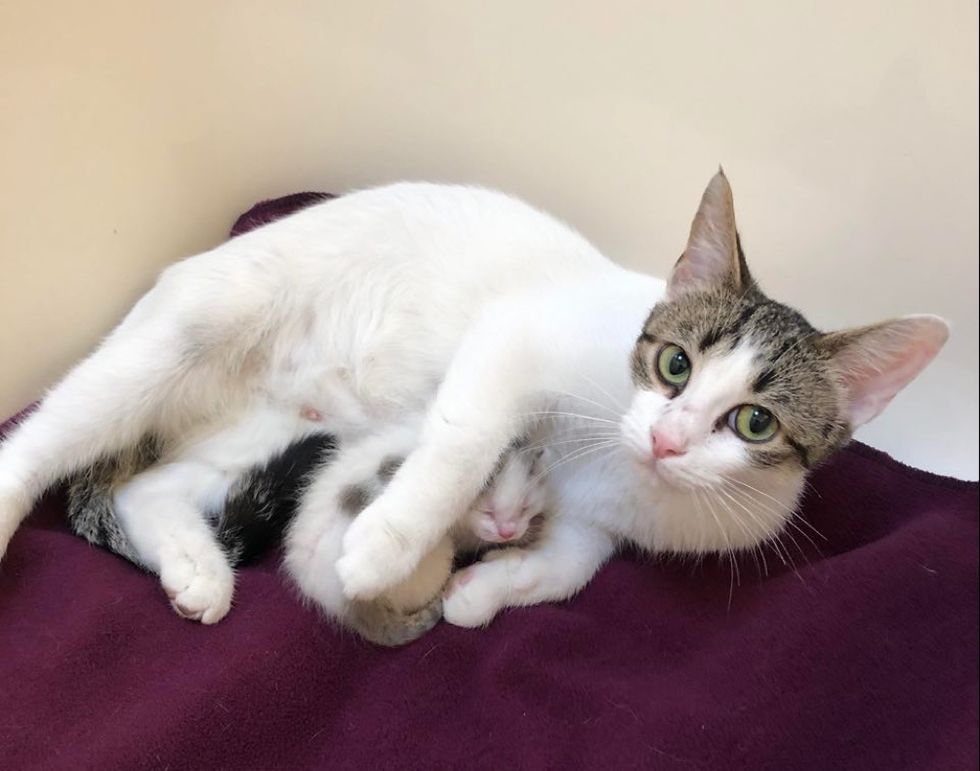 "Once she realized the baby was staying with her, she calmed right down, started purring, and wanted to be petted.