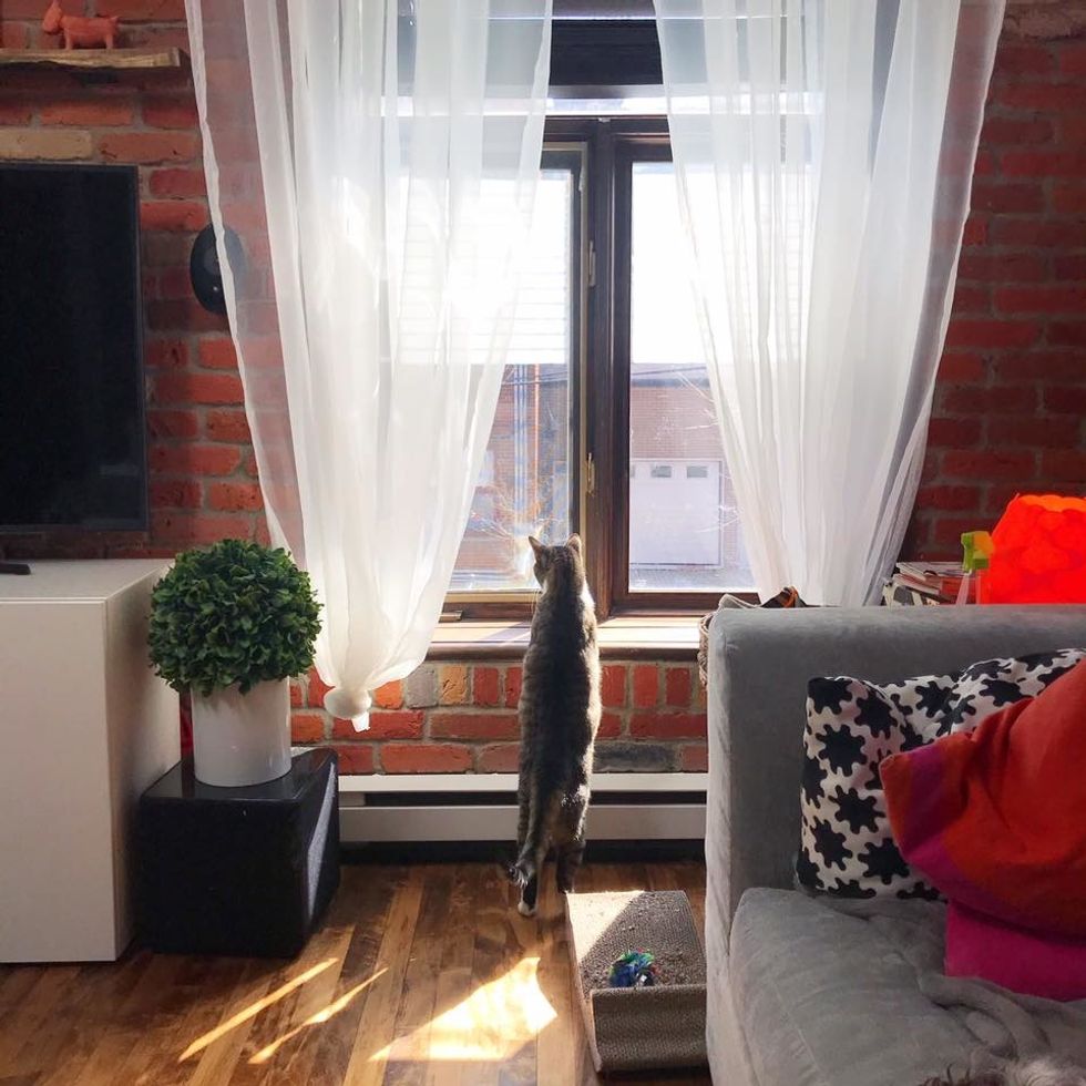 When the weather got colder and the cat became bolder, she decided it was time to bring him inside.