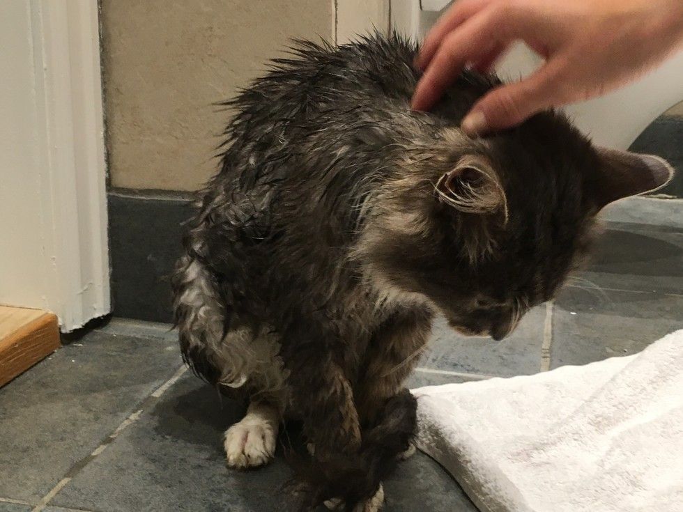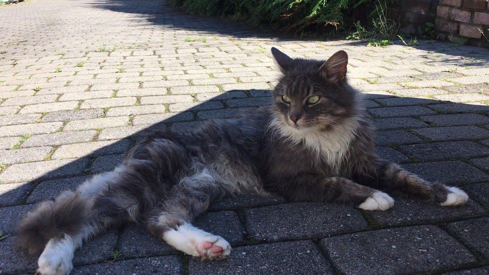 "We don't know how long he has been for himself," Fredriksen said. "We had to wash him and get rid of some ticks, but he was a happy kitty afterwards."