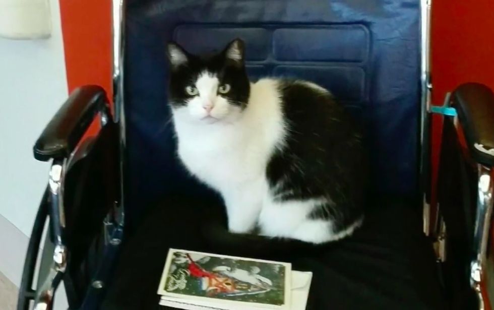 A black and white cat strayed her way into the hearts of people at a nursing home. She came to the place one day and decided to work there and make it her forever home.