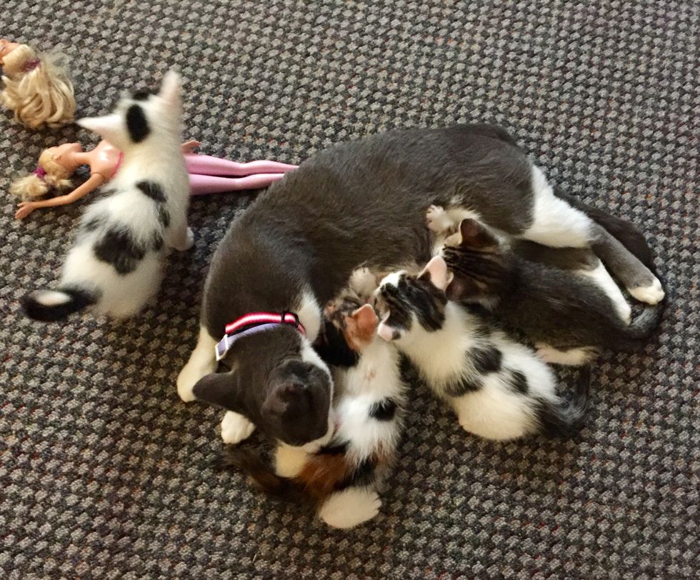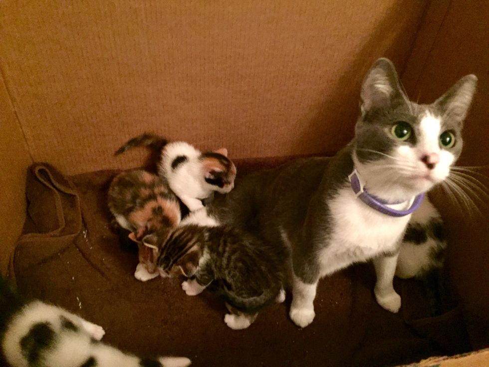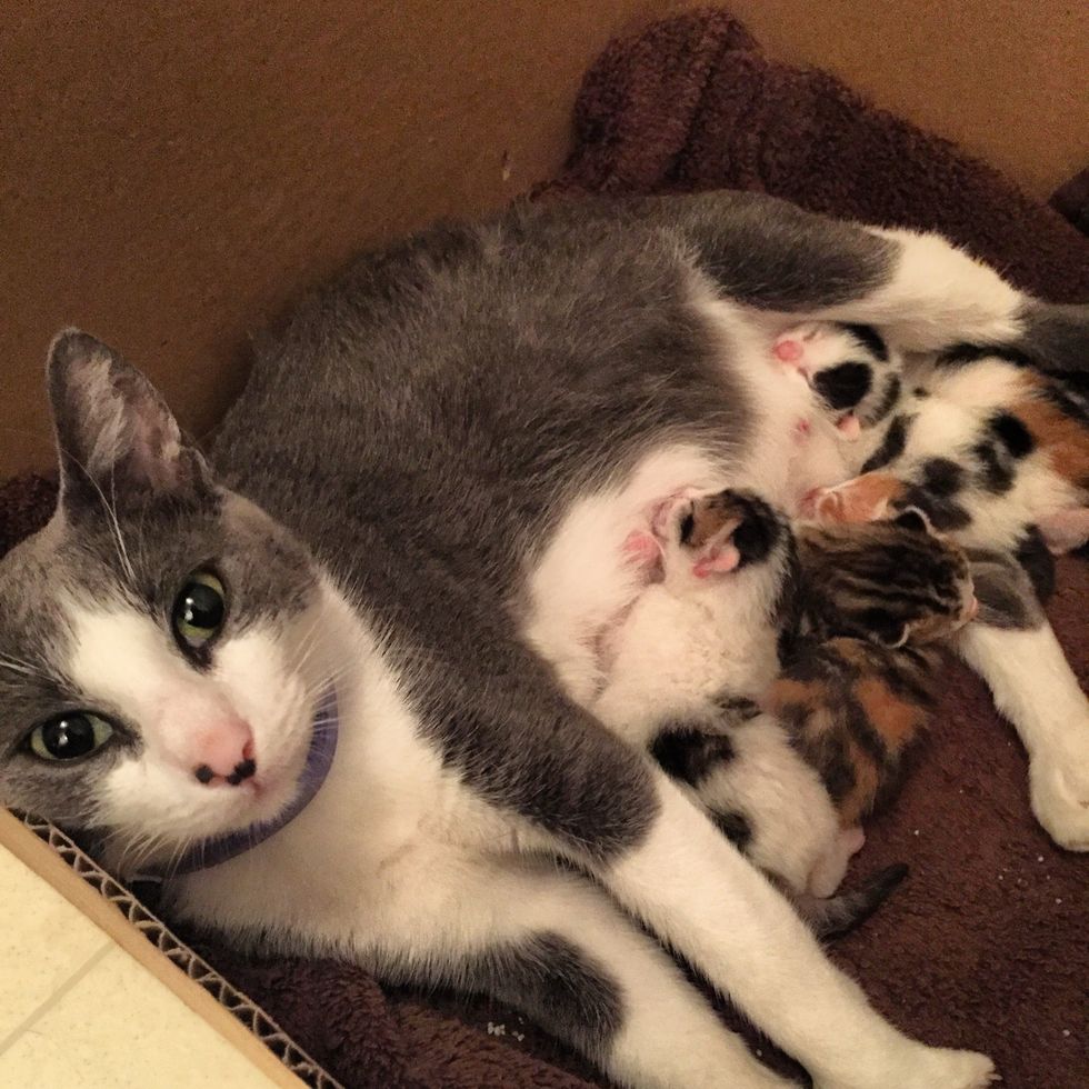 The family will have all the kittens and Mama spayed and neutered and adopted to good homes once they are big enough. However, Mama has already found her forever home where she is.
