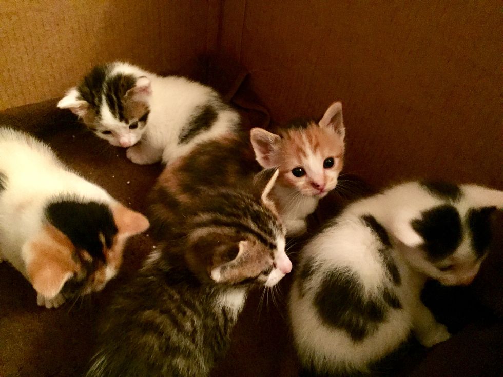 Soon they noticed her growing belly and realized that they weren't just feeding one cat. When it was early August, the sweet kitty gave birth to five adorable furballs who got to start their lives in a safe, cozy home with loving humans around them.