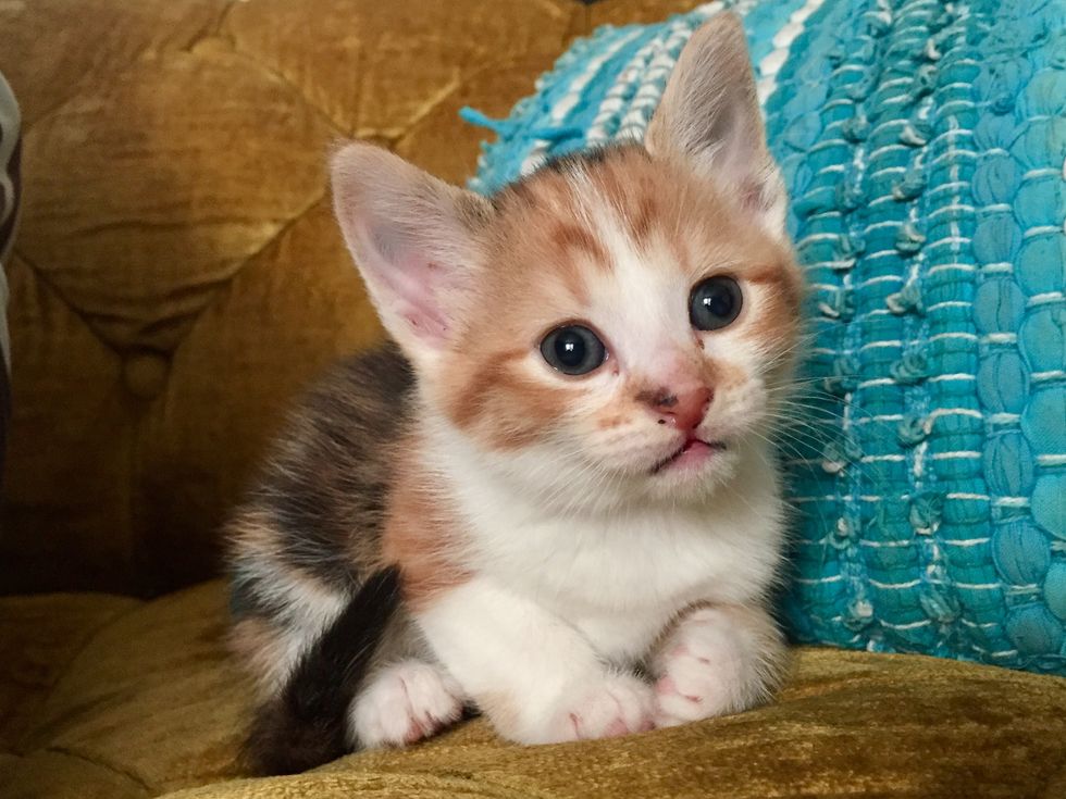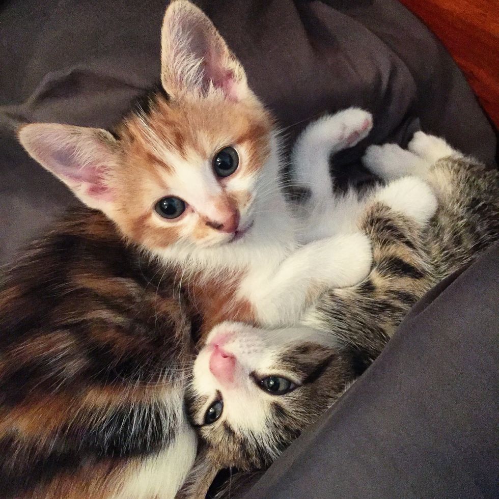 The sister and her husband fell in love with this tiny calico, Ruby and her brother Jasper. They decided to adopt them together so they could have a buddy to play with.