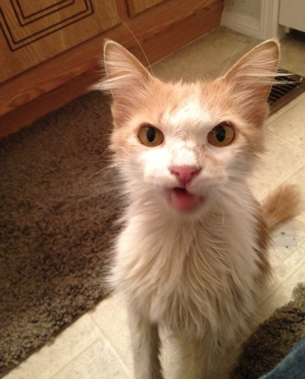 Kitty has certain features that caught their eyes. She has a crooked mouth, and her tail is only half the length of other cats, but not as stubby as that of a Manx cat.