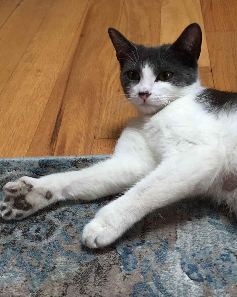 As the sweet kitty walked up to the kind person, she noticed her giant paws and those opposable thumbs!